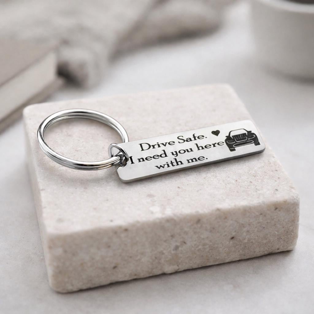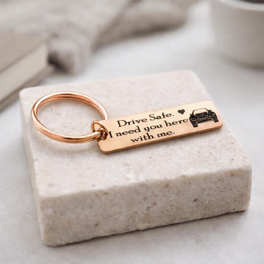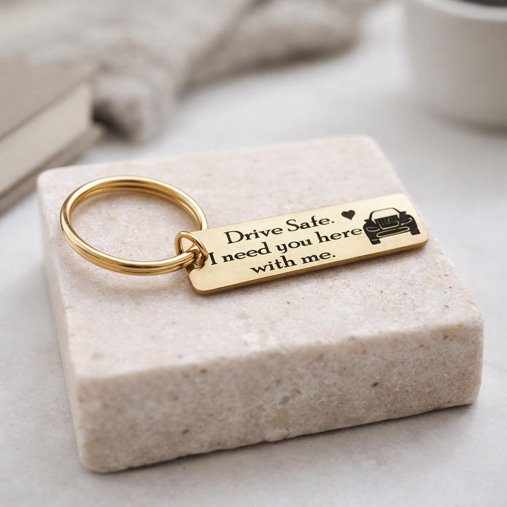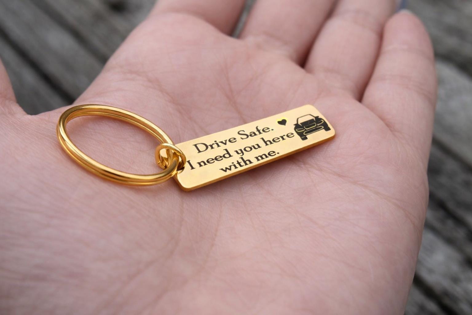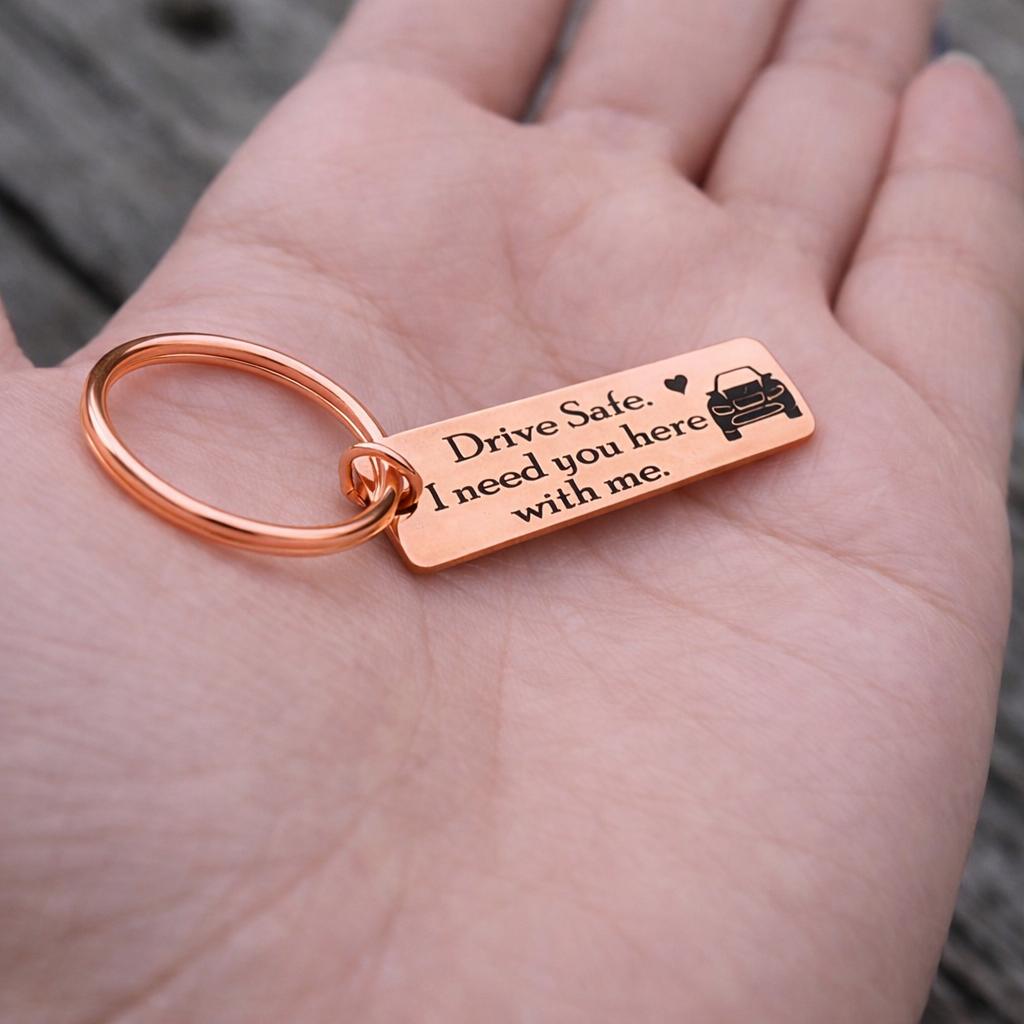 Drive Safe i need you here with me keychain - Rose Gold OR Yellow Gold Color.