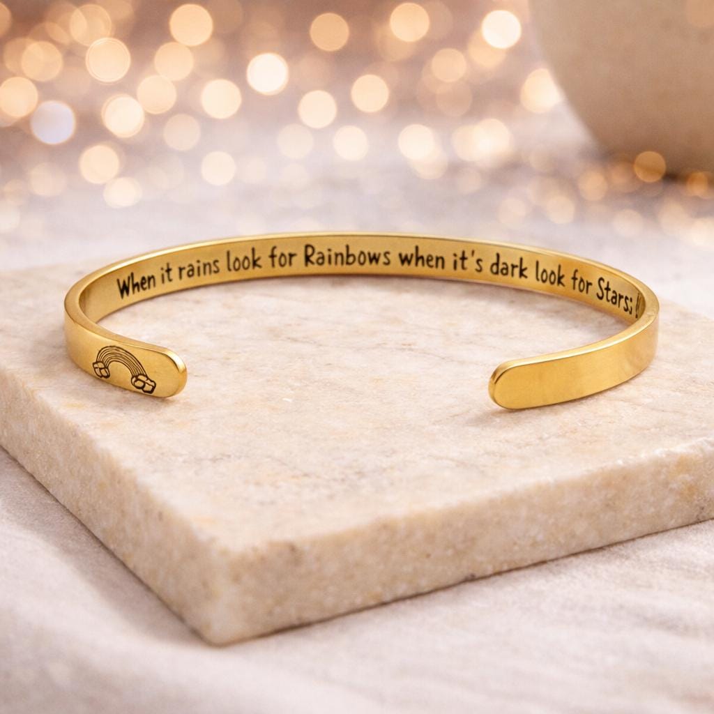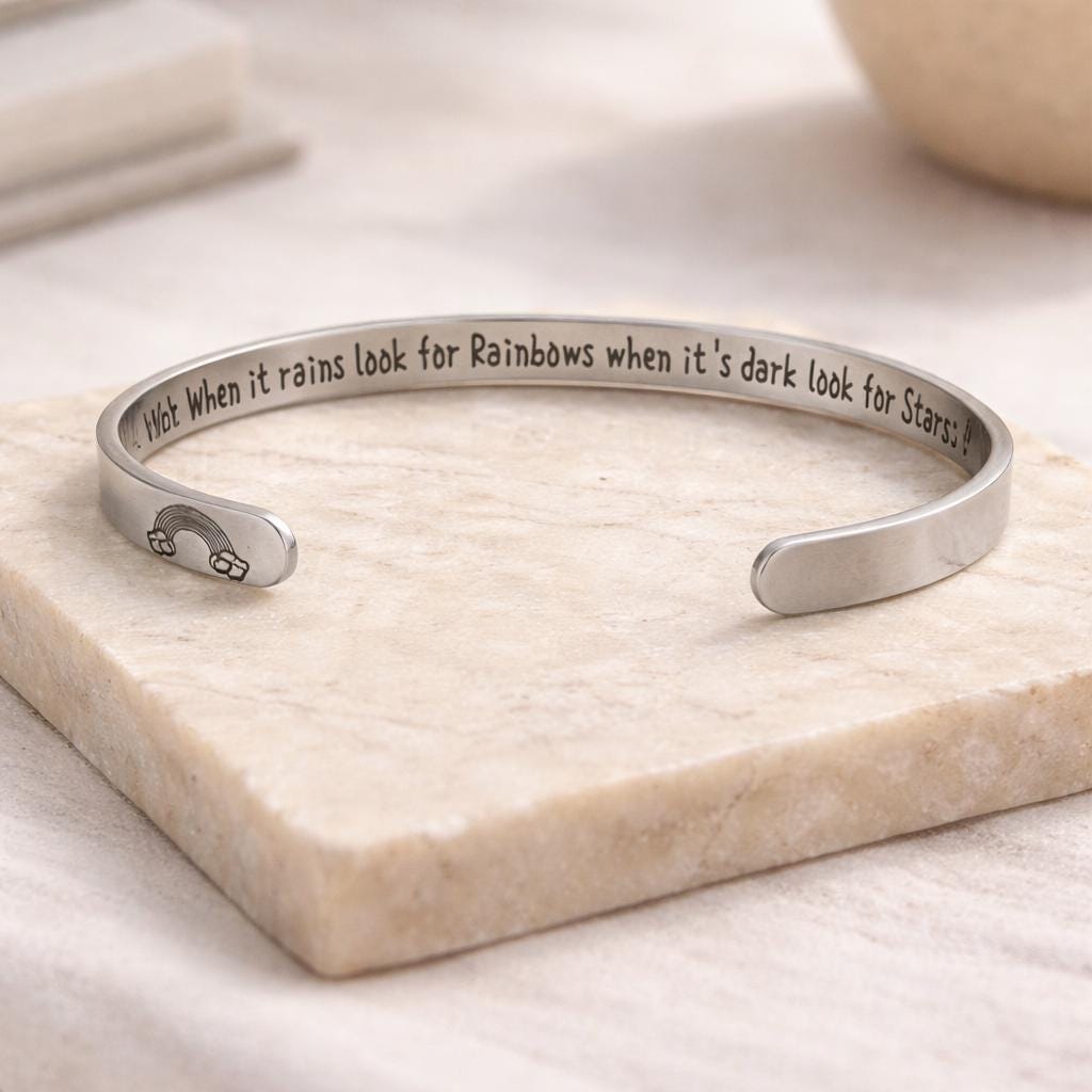 This Bracelet has the Message engraved on the inner side. (Secret side message).