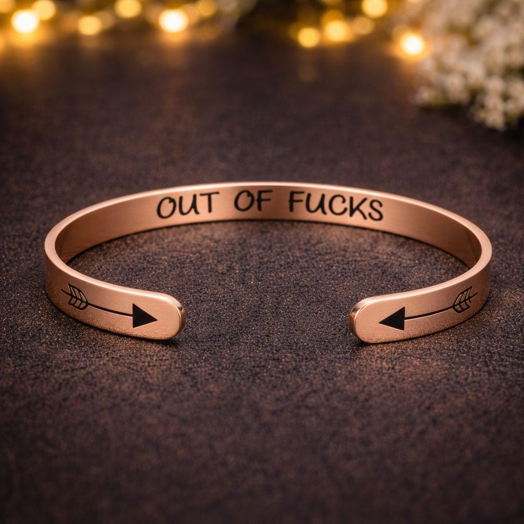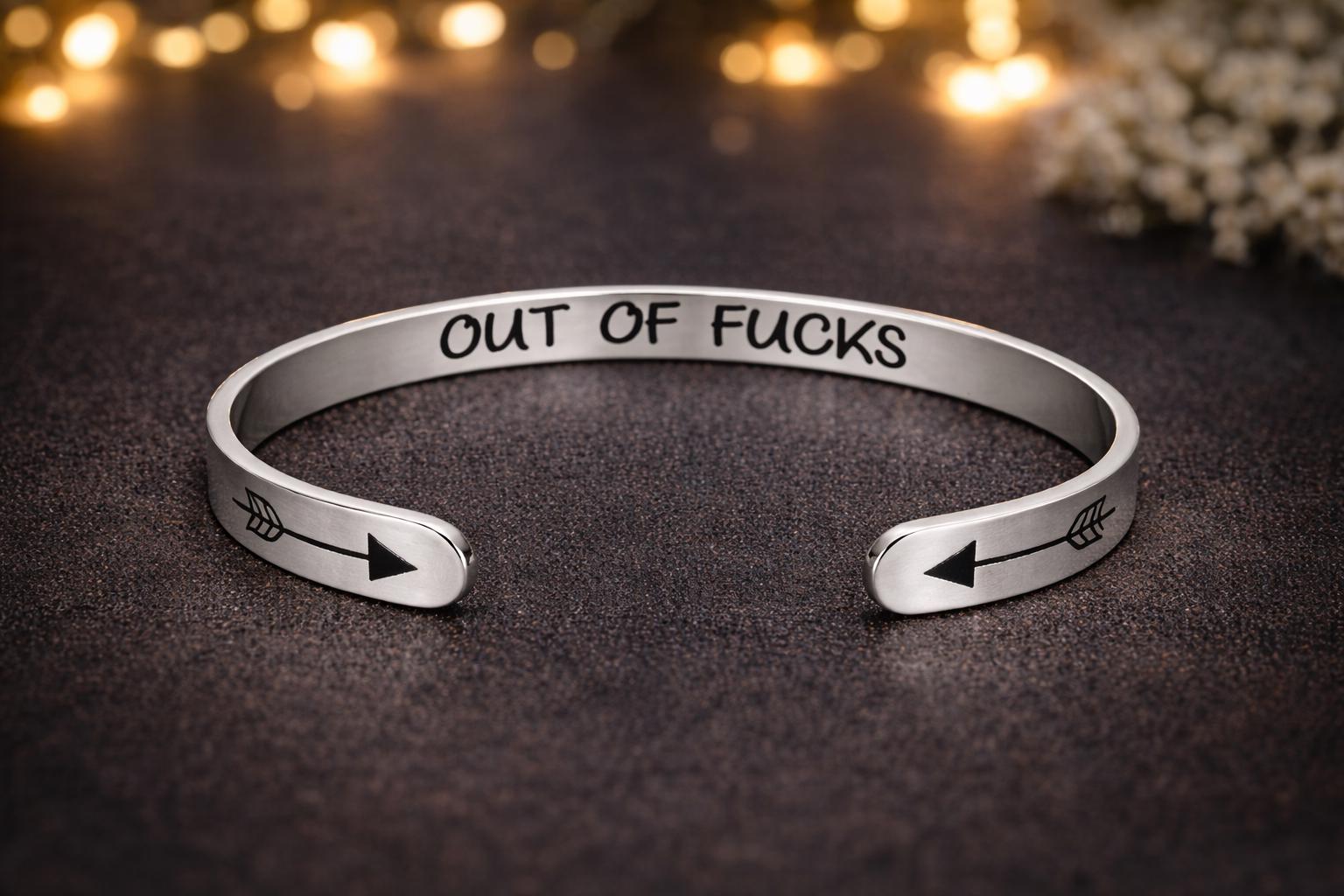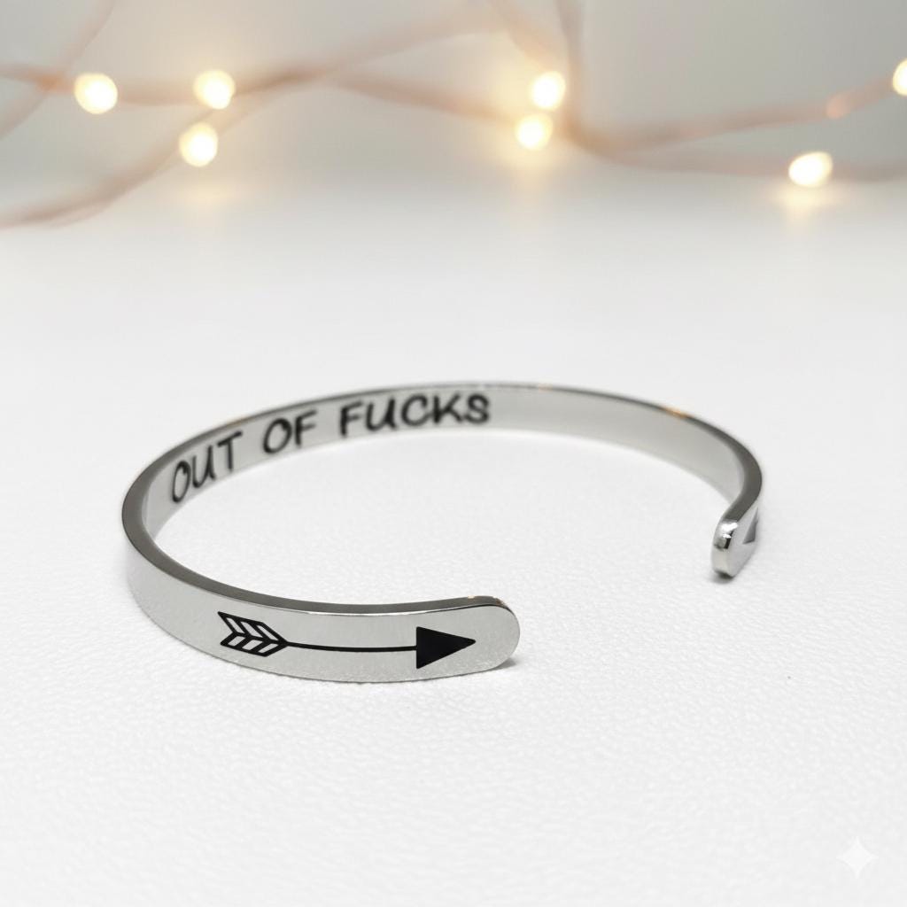 Out of Fucks Inspirational Bracelet Cuff Bangle Mantra Quote Steel Motivational Friend Jewelry Gift for Women Teen Girls Sister.