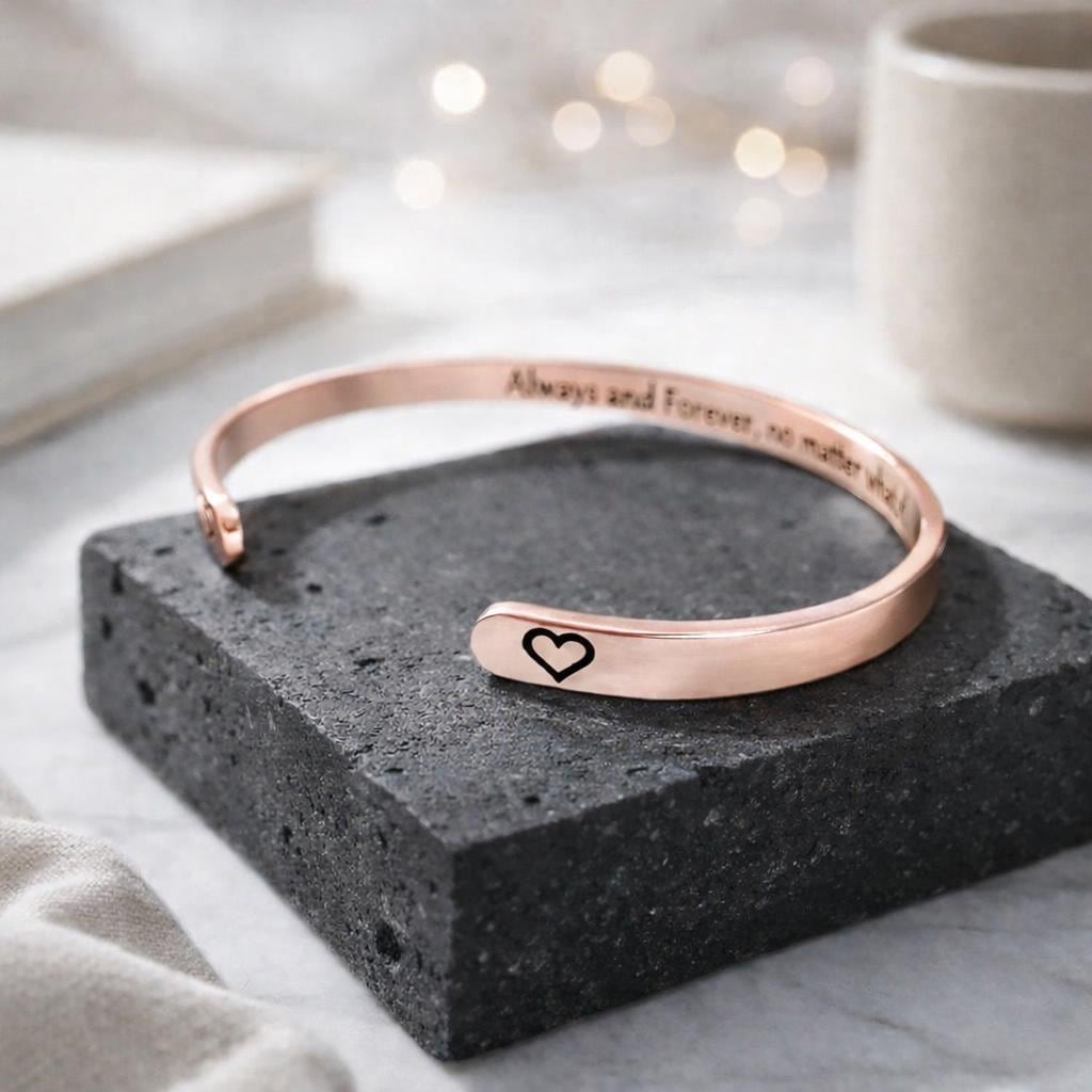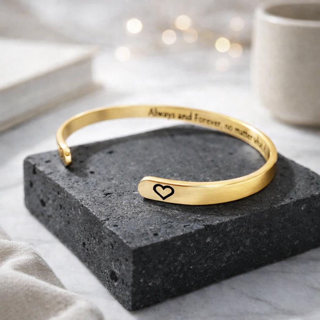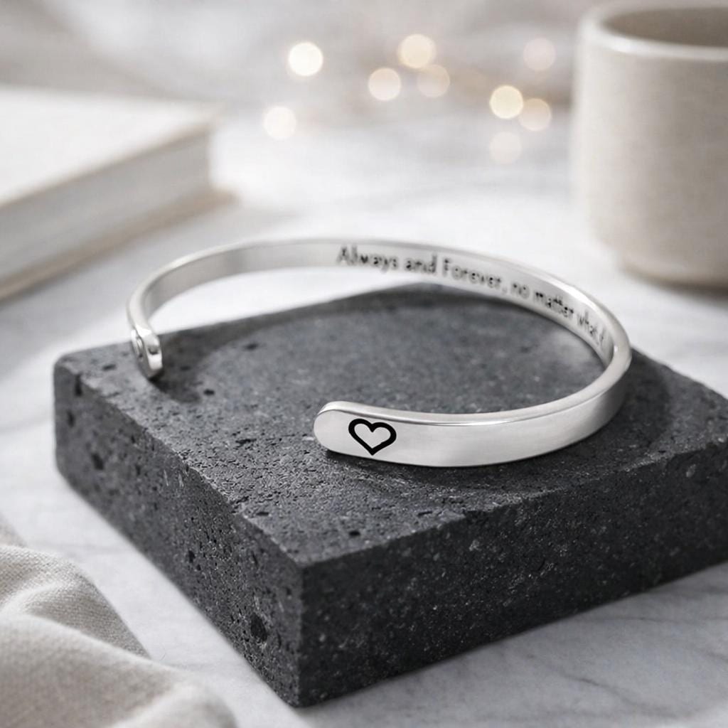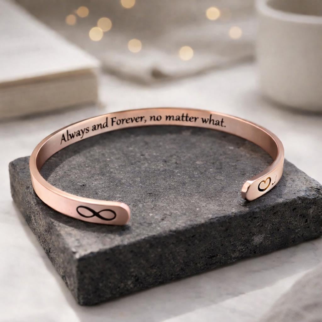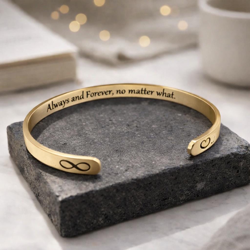 This Bracelet has the Message engraved on the inner side. (Secret side message).