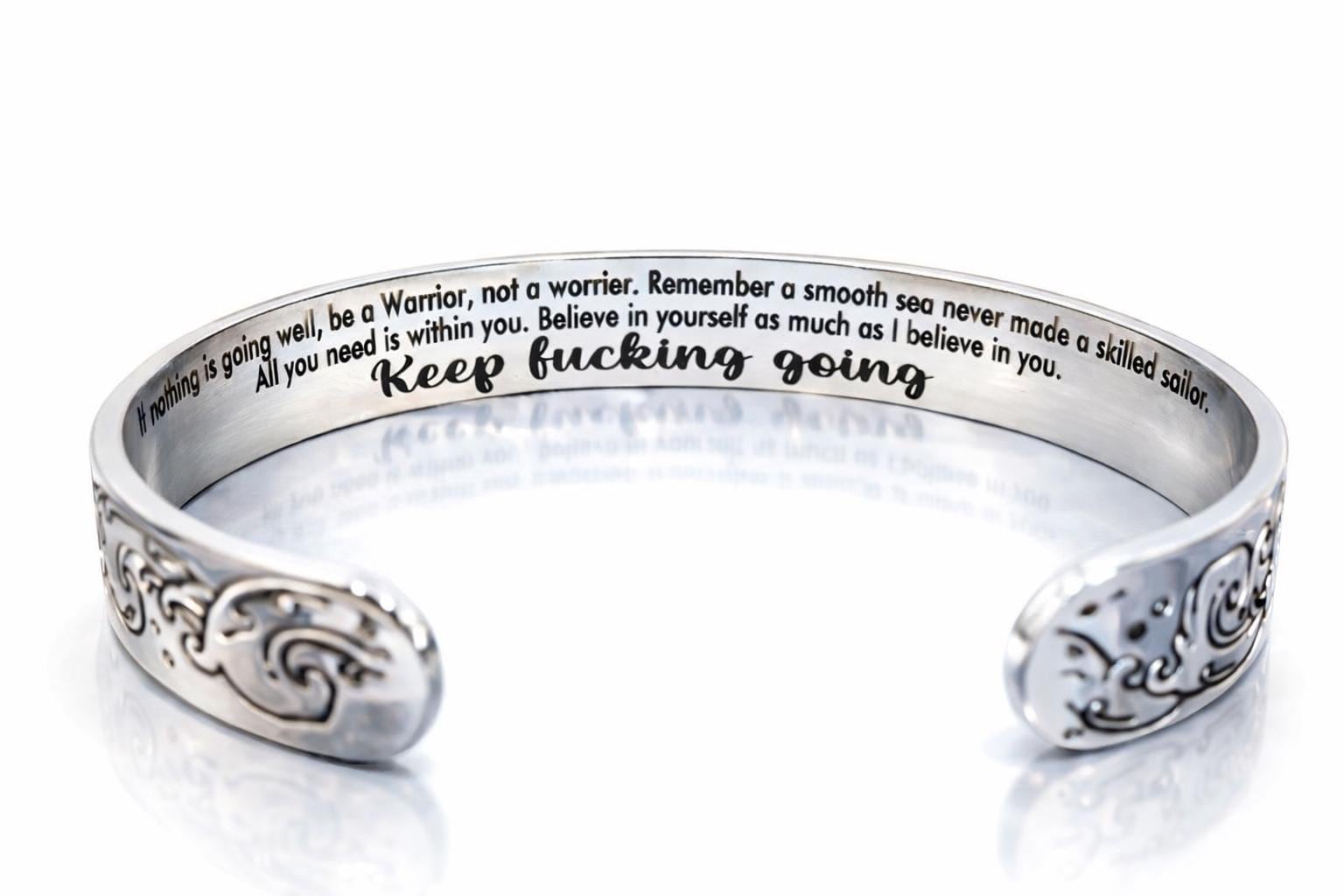 Keep fucking Going Mantra Bracelet Inspirational Cuff Encouragement Jewelry Gift Bangle