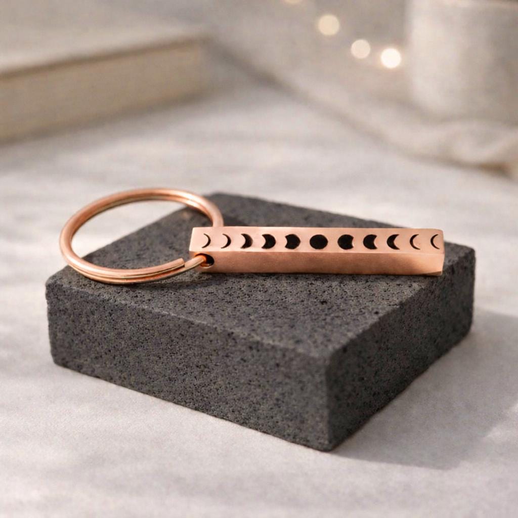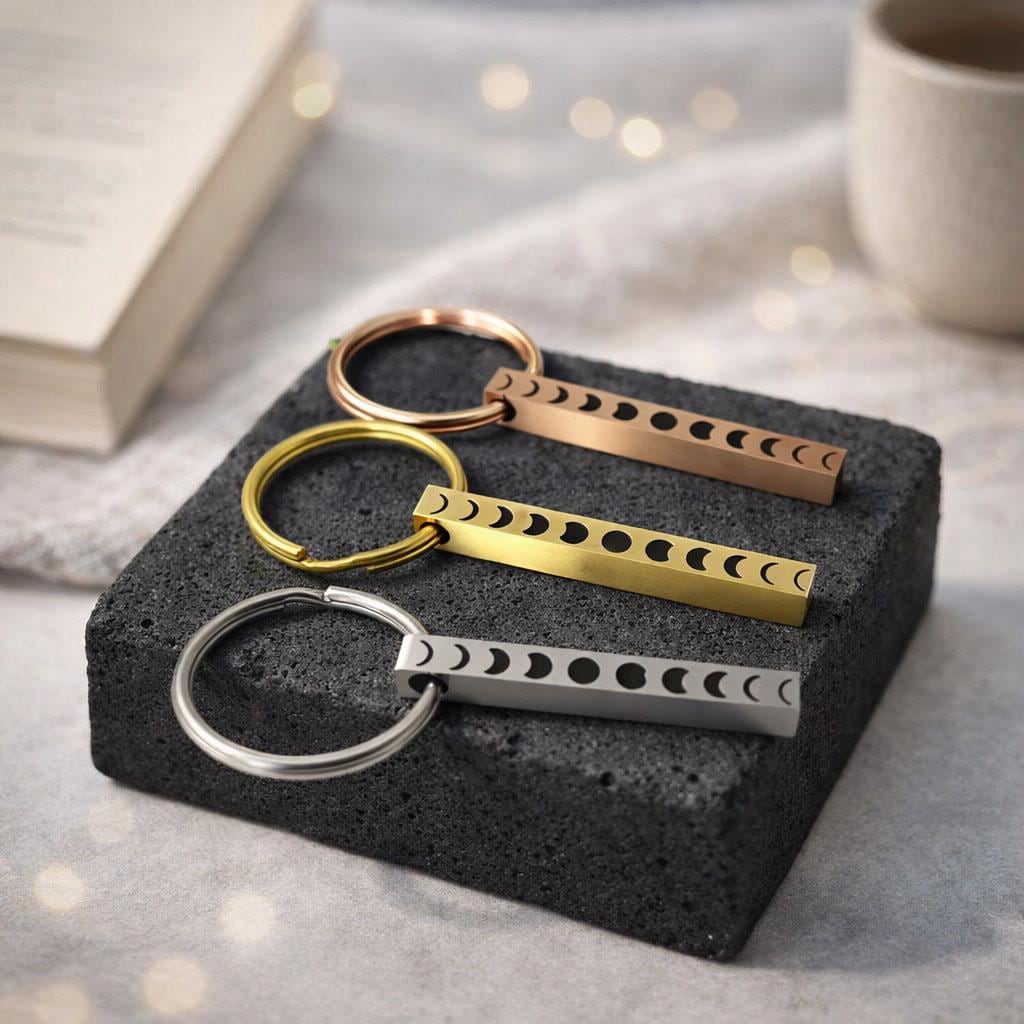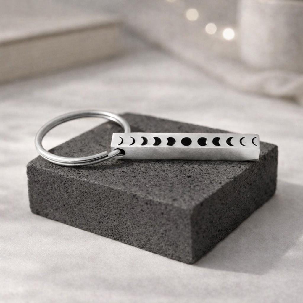 Personalized Moon Phase Bar Keychain, Moon Keyrings. Moon Custom made KEYCHAINS for women men