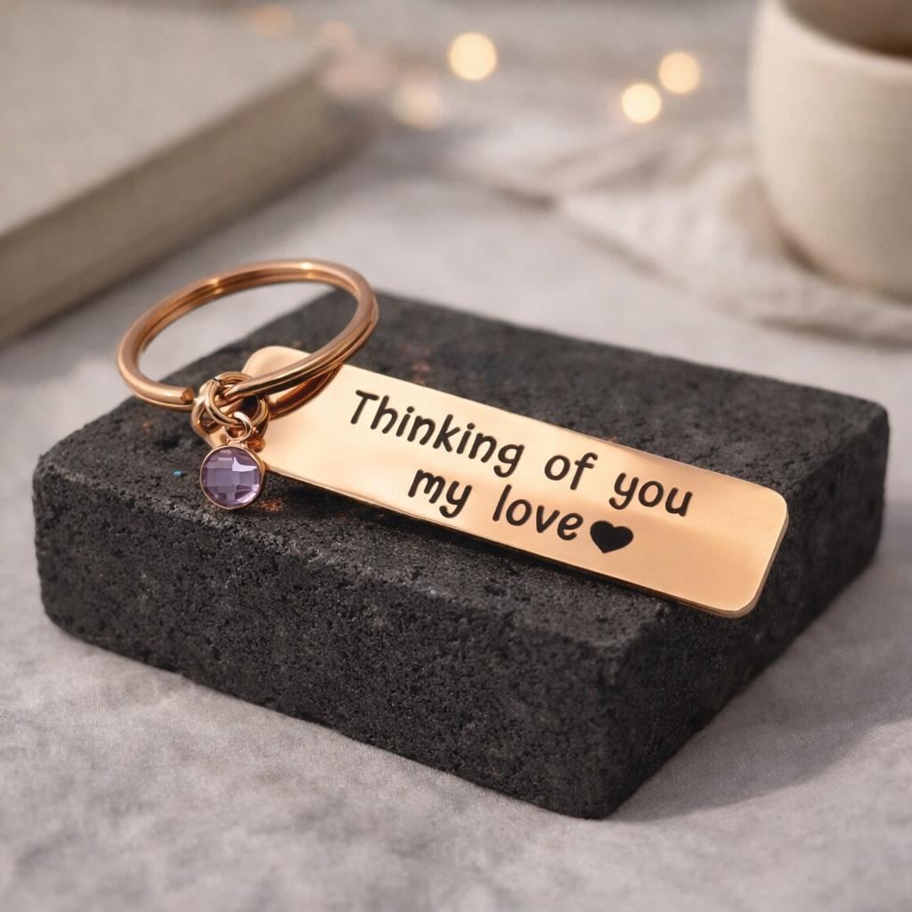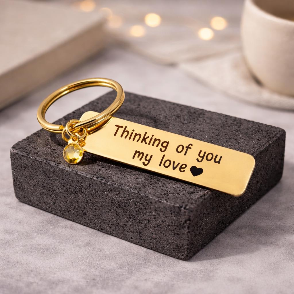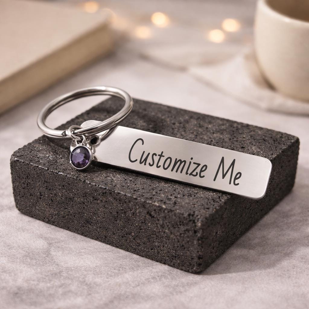 Custom Birthstone Keychain Key Ring , personalized jewelry, Engraved keychain, birthstone keychains, gift for her