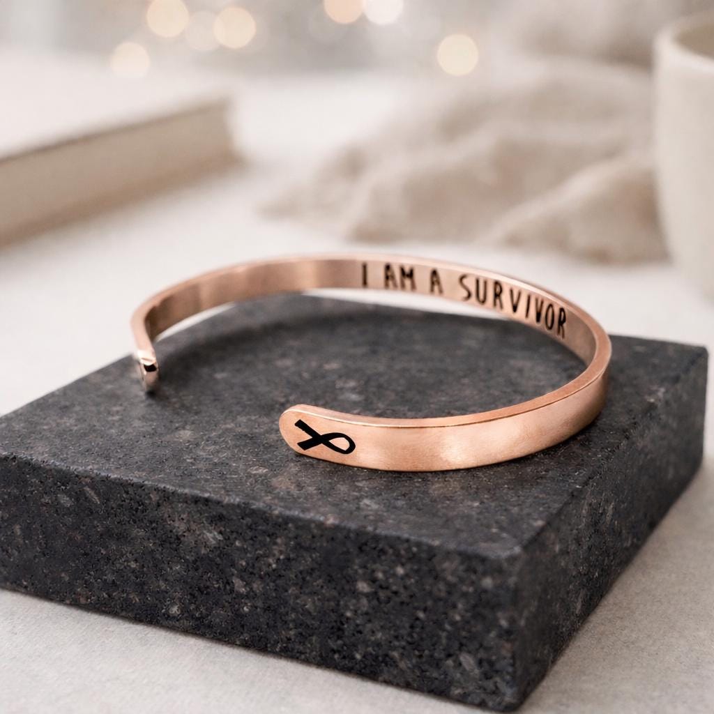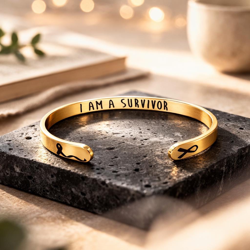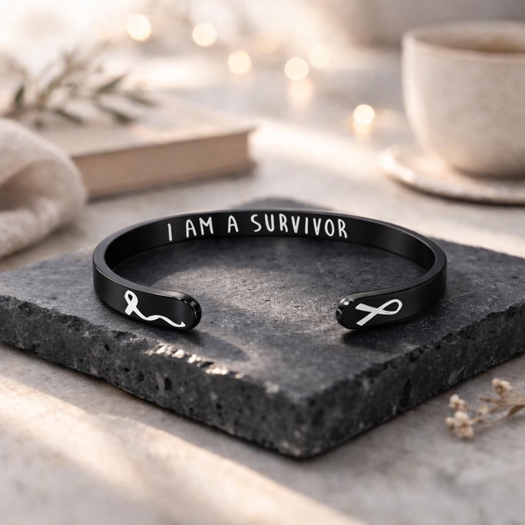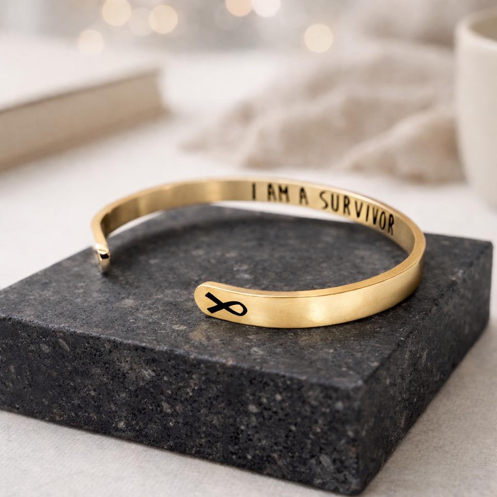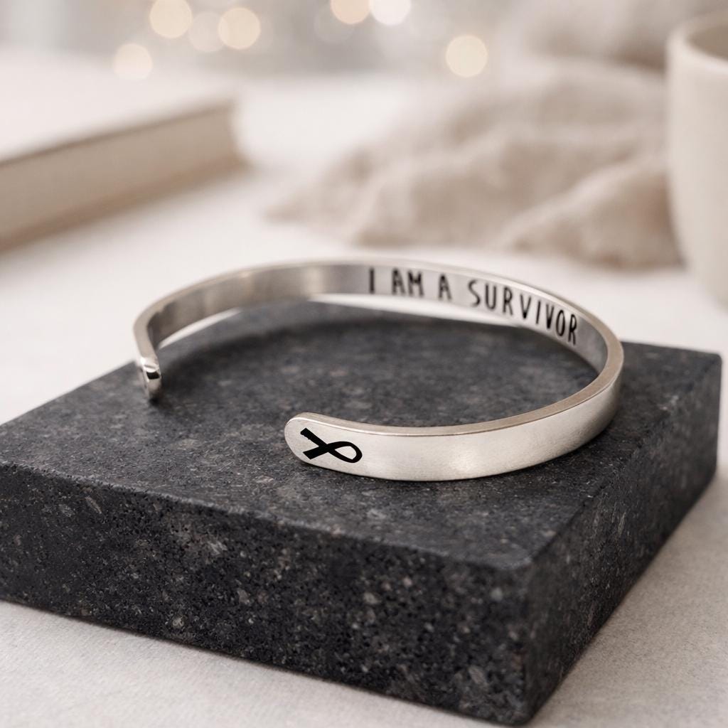 On the inside - “I Am A Survivor” - Gift for Women which signify to Keep Going On or Keep Moving and we Love you and we are with you.