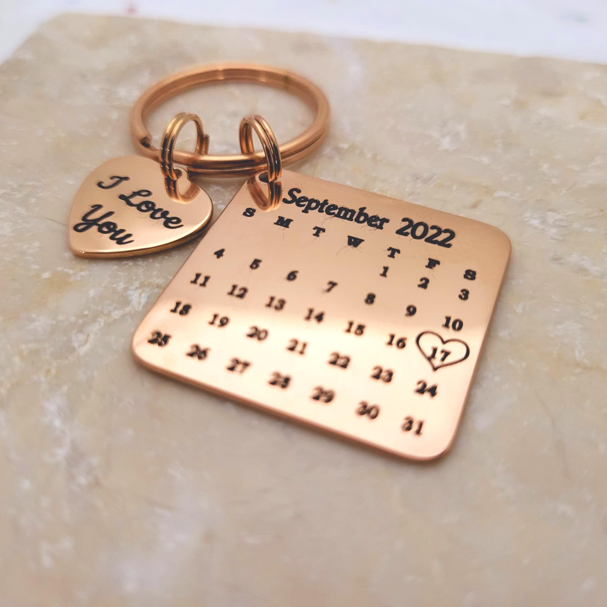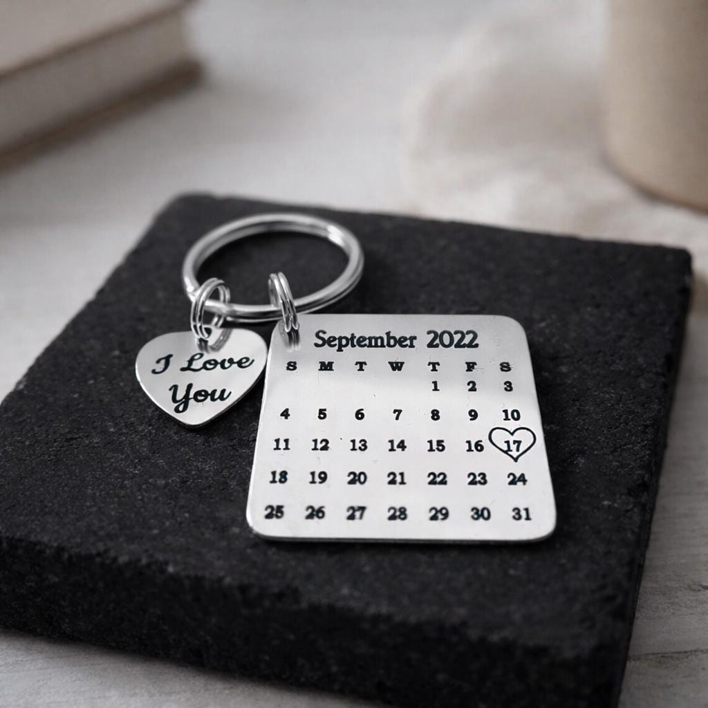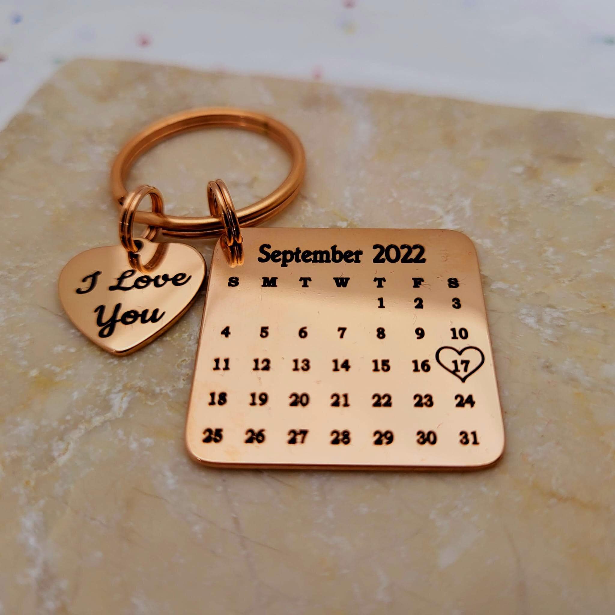 Customized Calendar Date Keychain, Anniversary Gift, Engagement Gift, Wedding Custom Date Personalised Keychain.