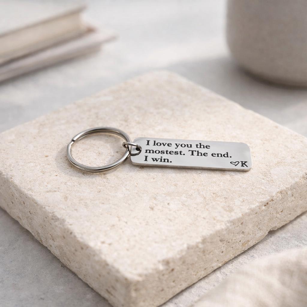 I Love You the More / Mostest Custom Engraved Stainless Steel key chain Best Friend/Boyfriend/Girlfriend /Christmas/Valentines gift.