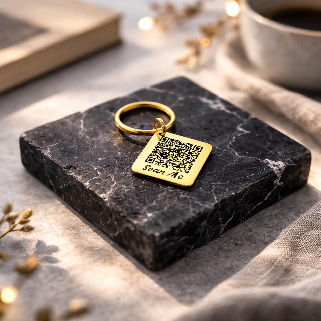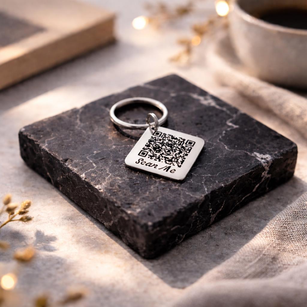 This Keychain is a QR CODE Engraved keychain and will last for Life Time.