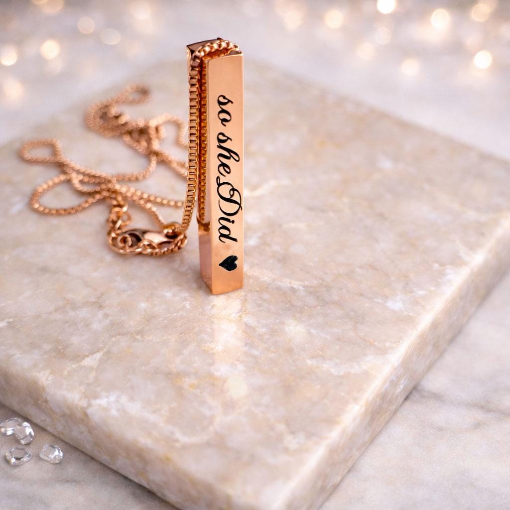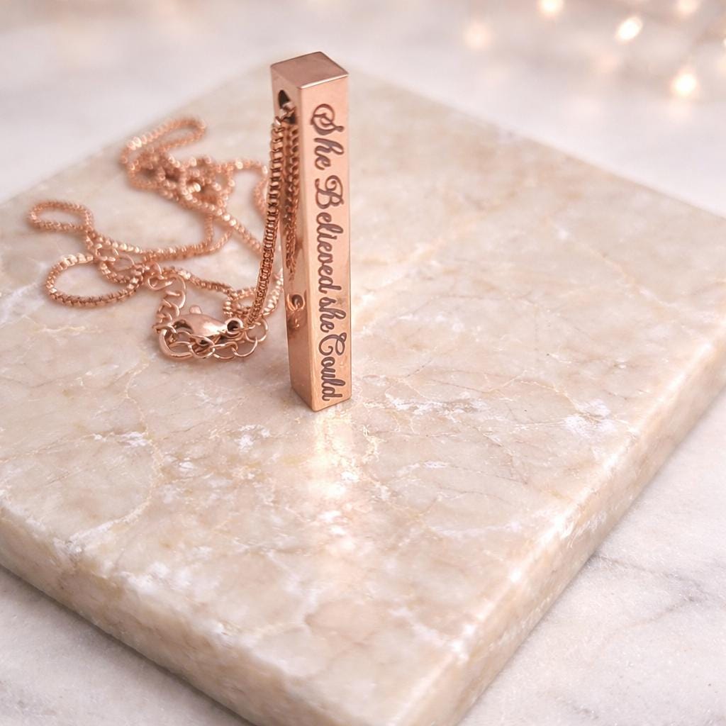 Bar Pendant height: 4 Cms ; Bar Pendant width: 5 Millimeters + adjustable chain.