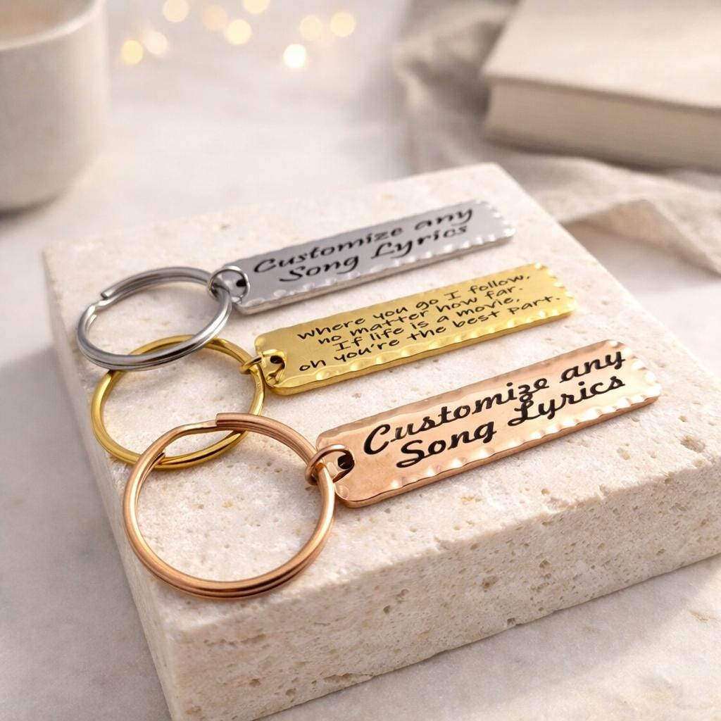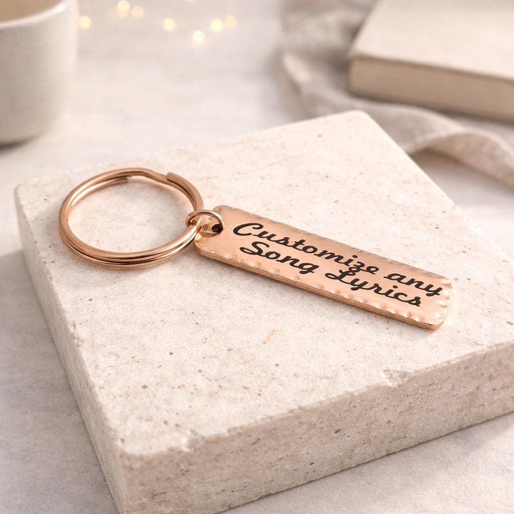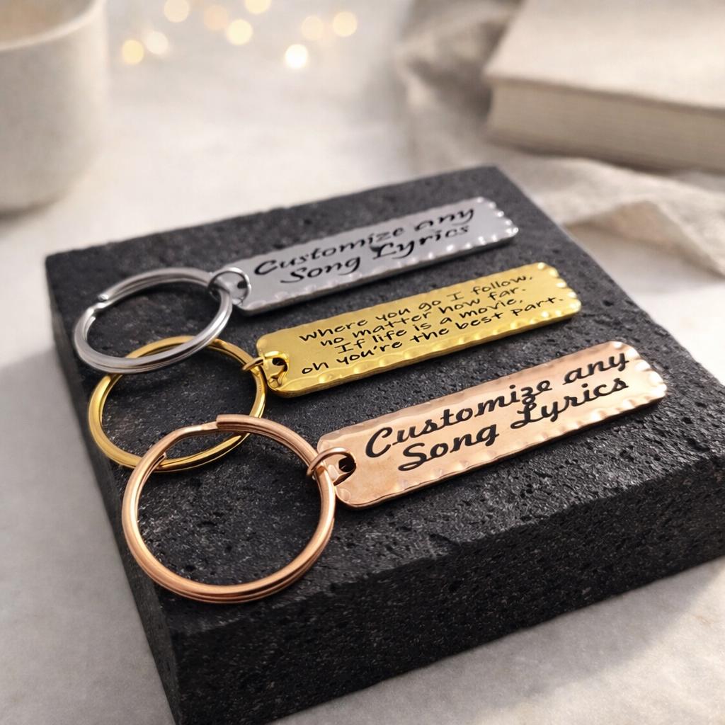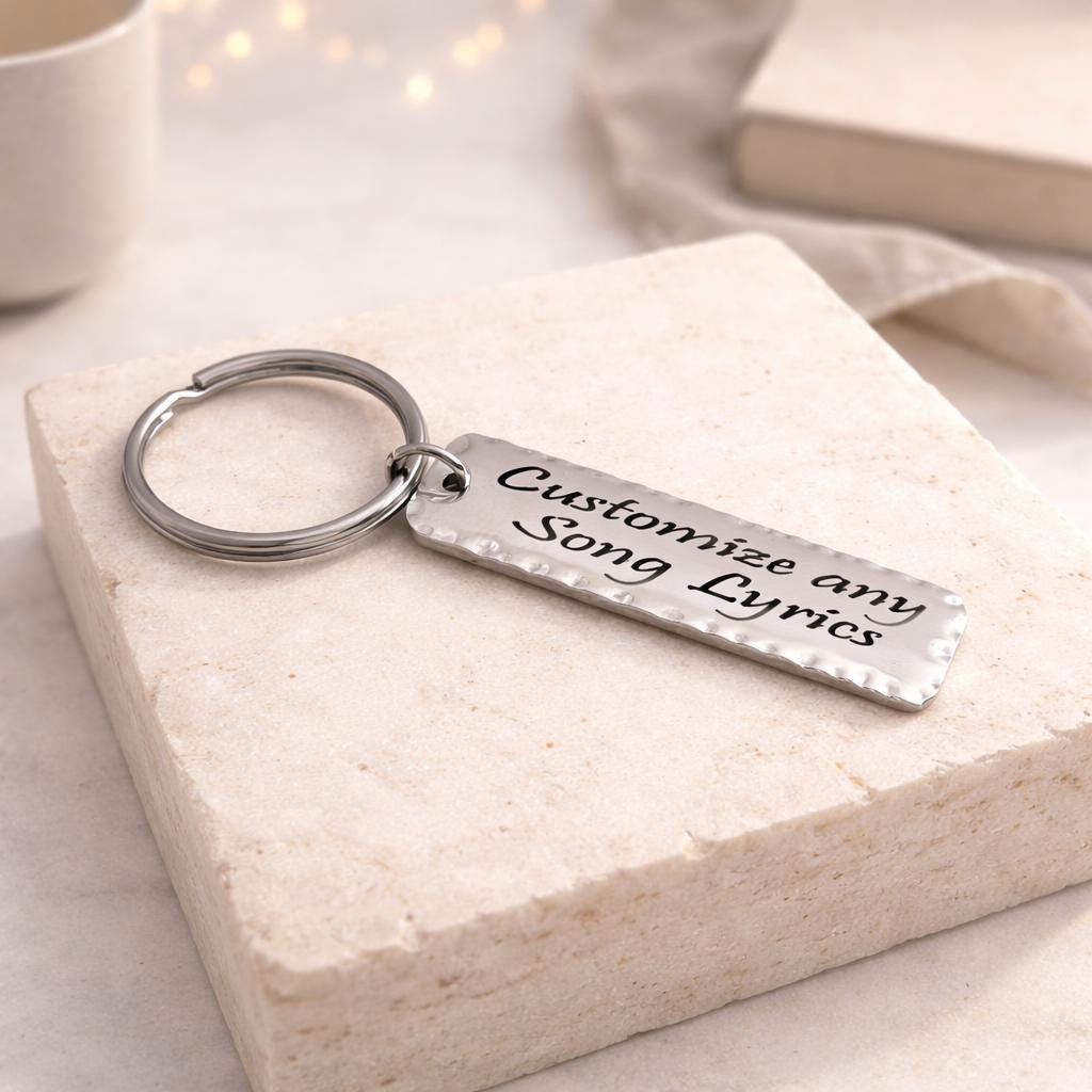 Customize any SONG Lyrics on Key Chain on Hammered Keychain Jewelry