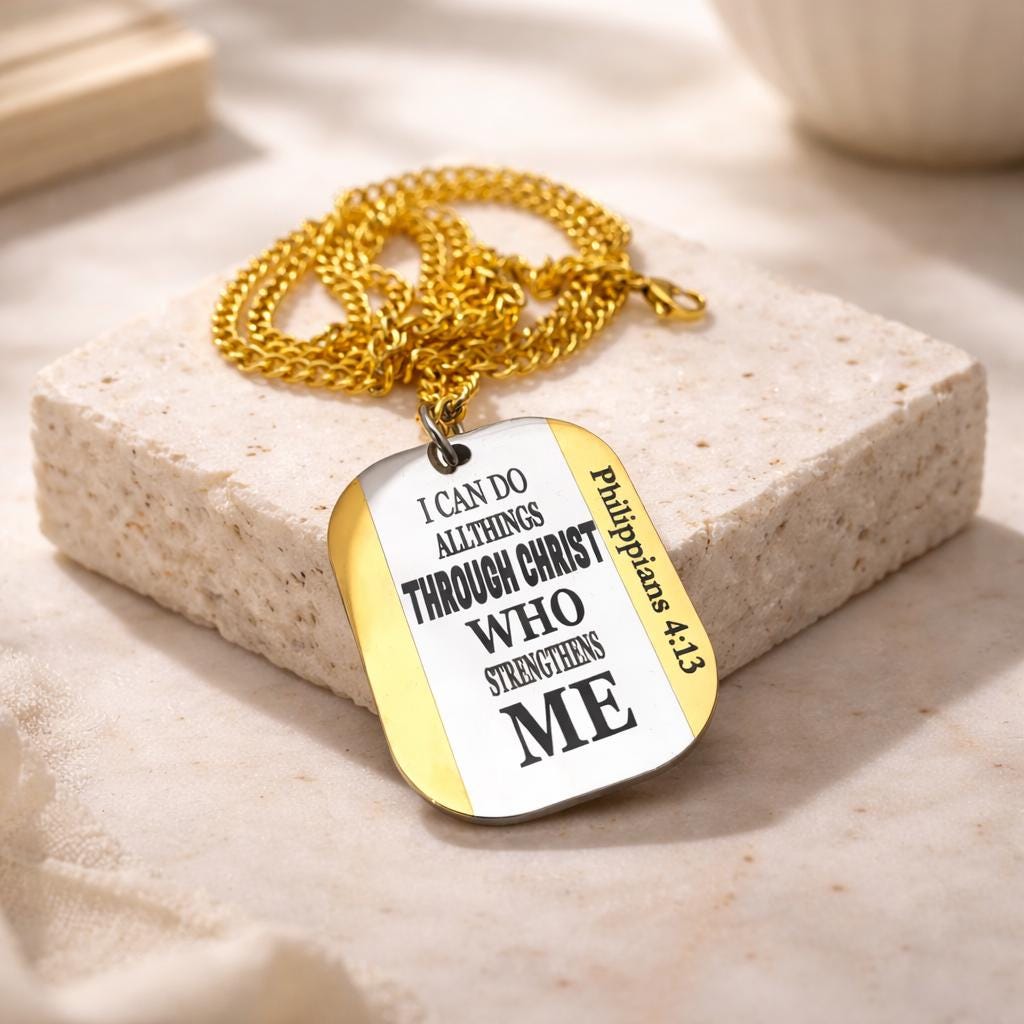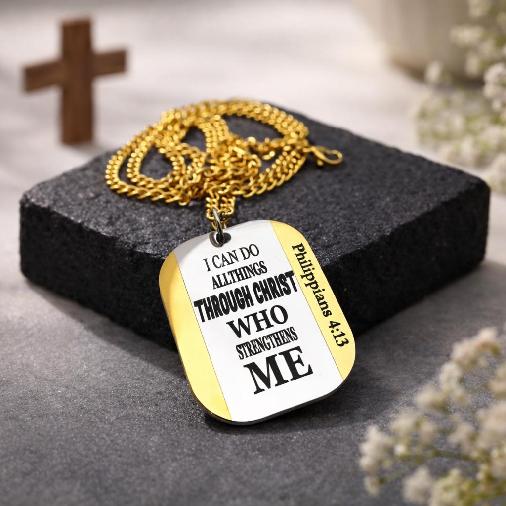 I can do all things through Christ who strengthens me. Philippians 4:13 Thick Pendant for Men Women Kids Girls Boys.
