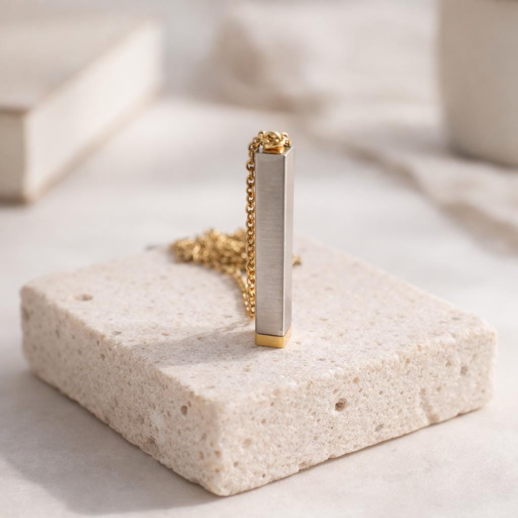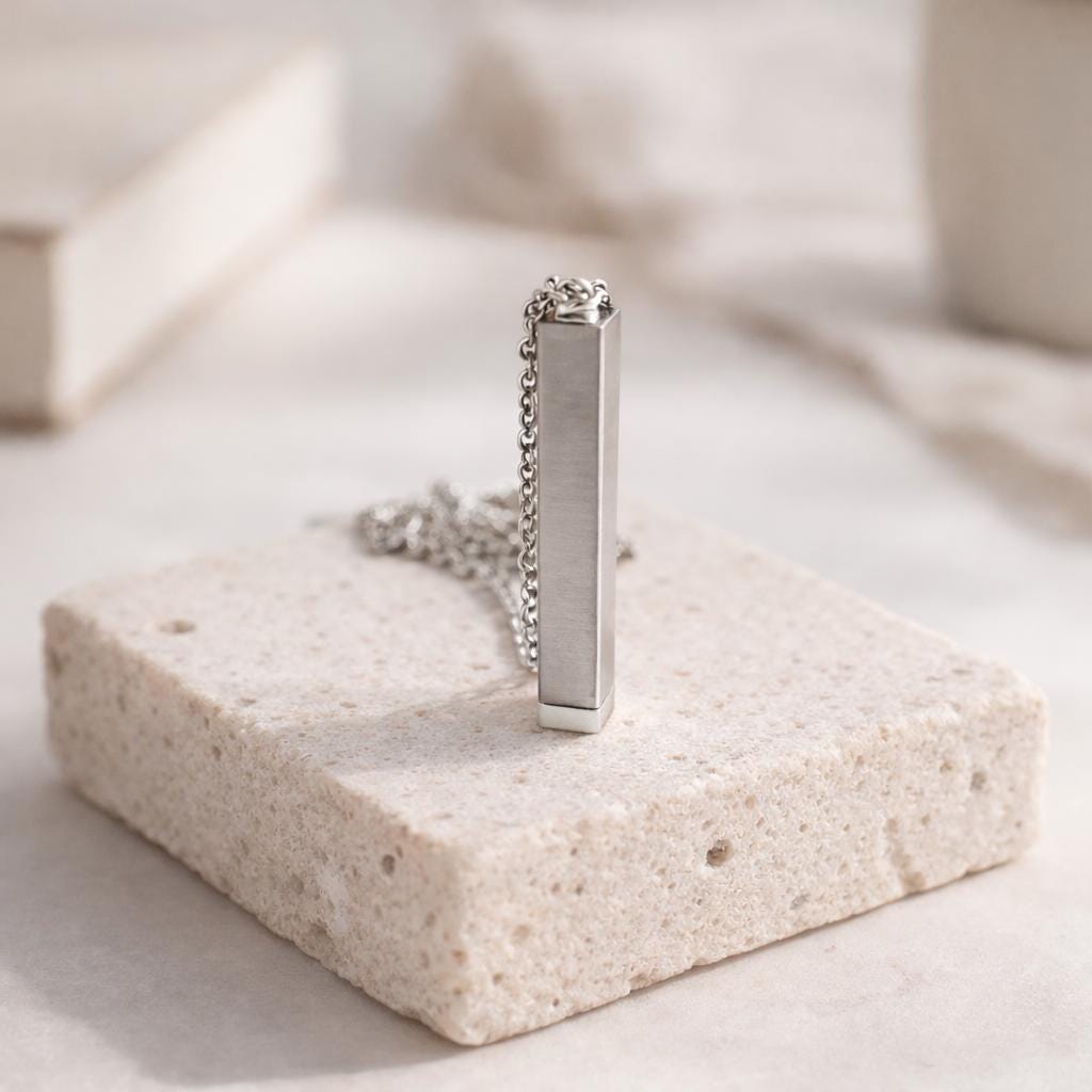 Bar Pendant height: 40 Millimeters; Bar Pendant width: 5 Millimeters + a Chain 55 cm End to End
