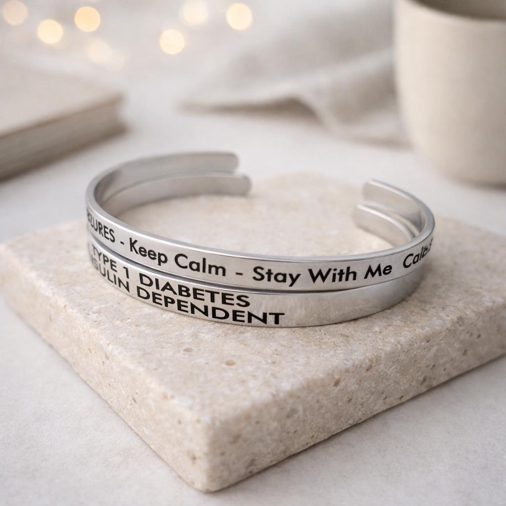 Medical Alert Bracelet personalized to your specific conditions, medical need or emergency contact information.