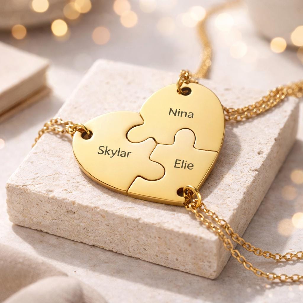 Personalized Initial Interlocking Puzzle Heart Family Pendant Necklace.