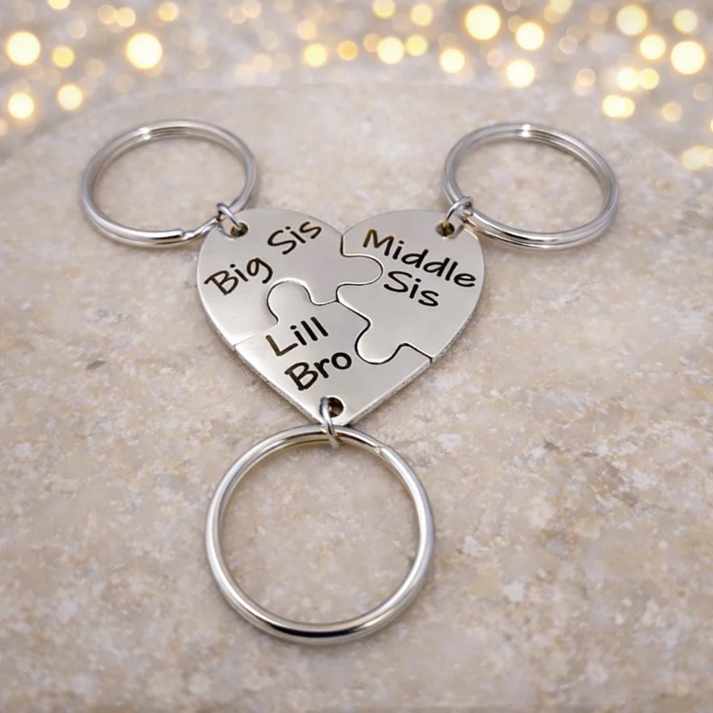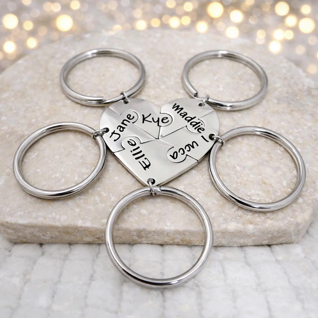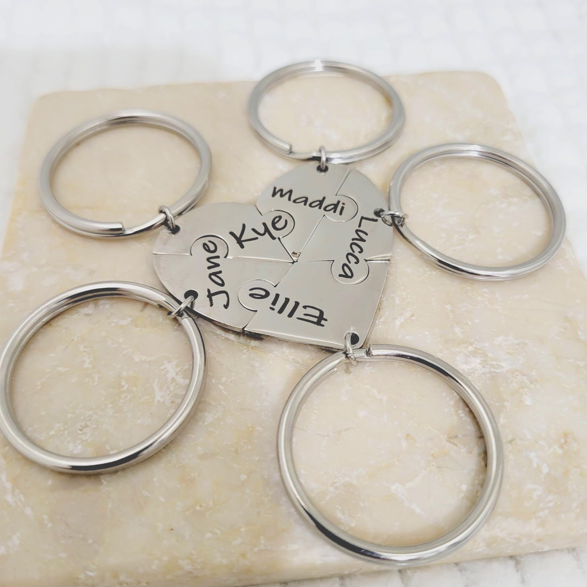 Keychain Initial Interlocking Puzzle Heart Family Pendant Key chain Keyring.
