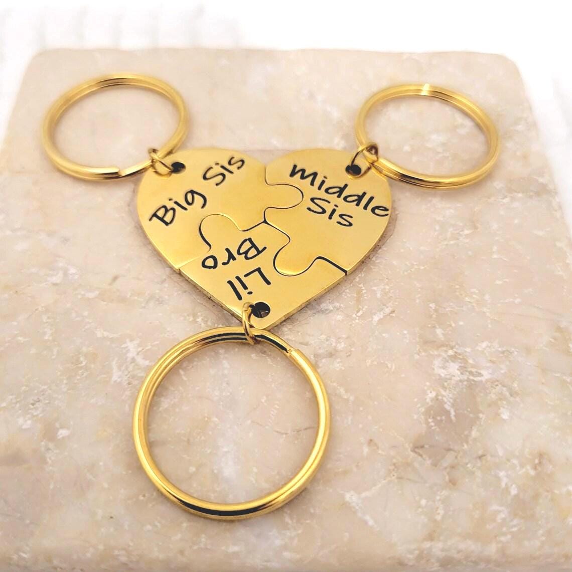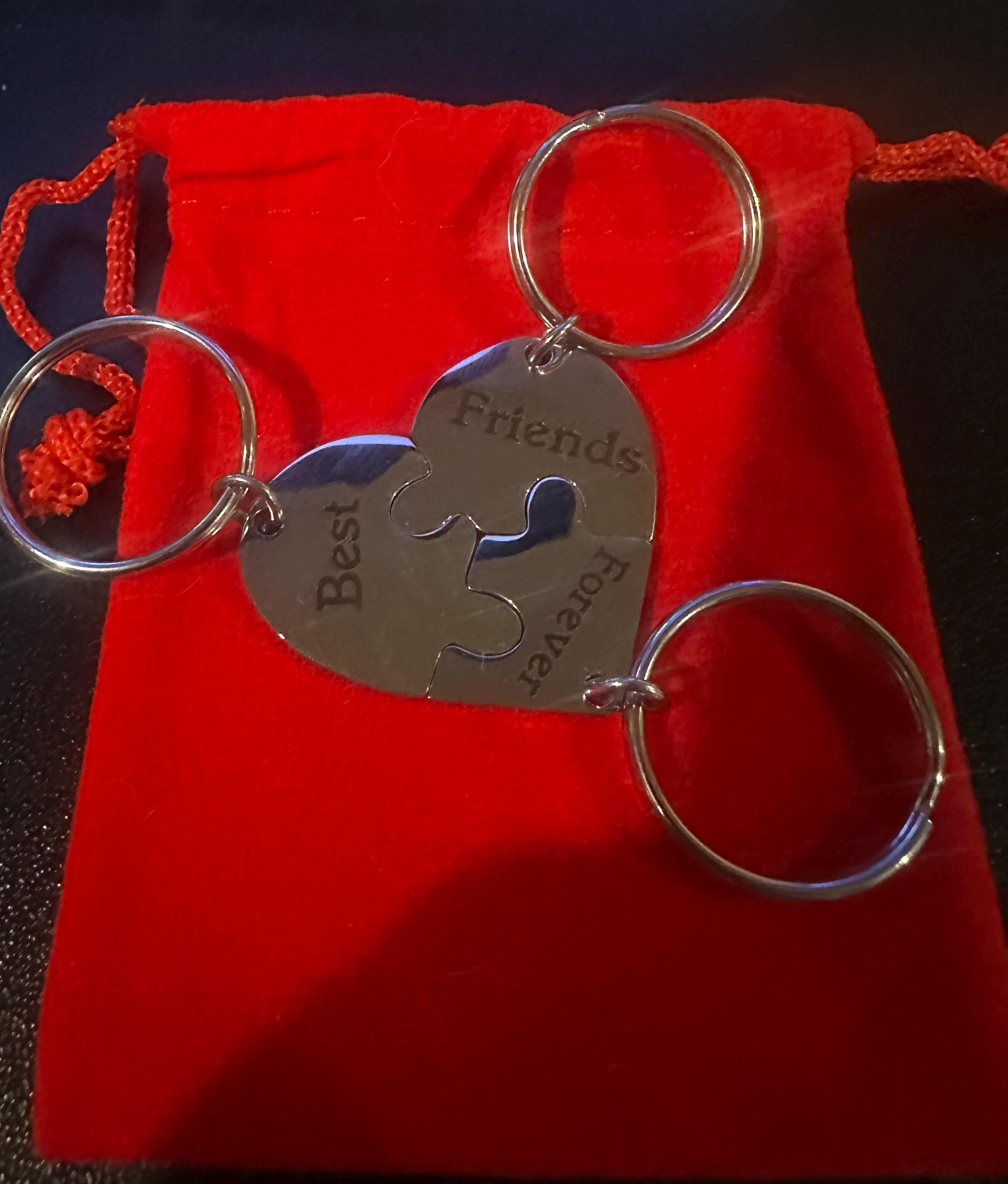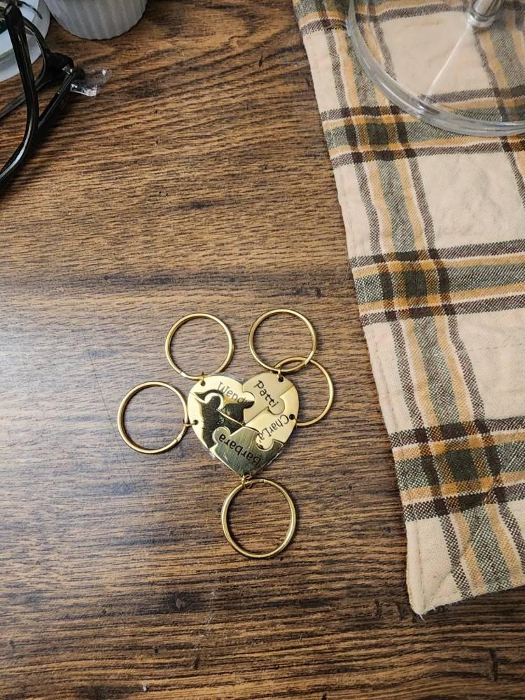 Keychain Initial Interlocking Puzzle Heart Family Pendant Key chain Keyring.