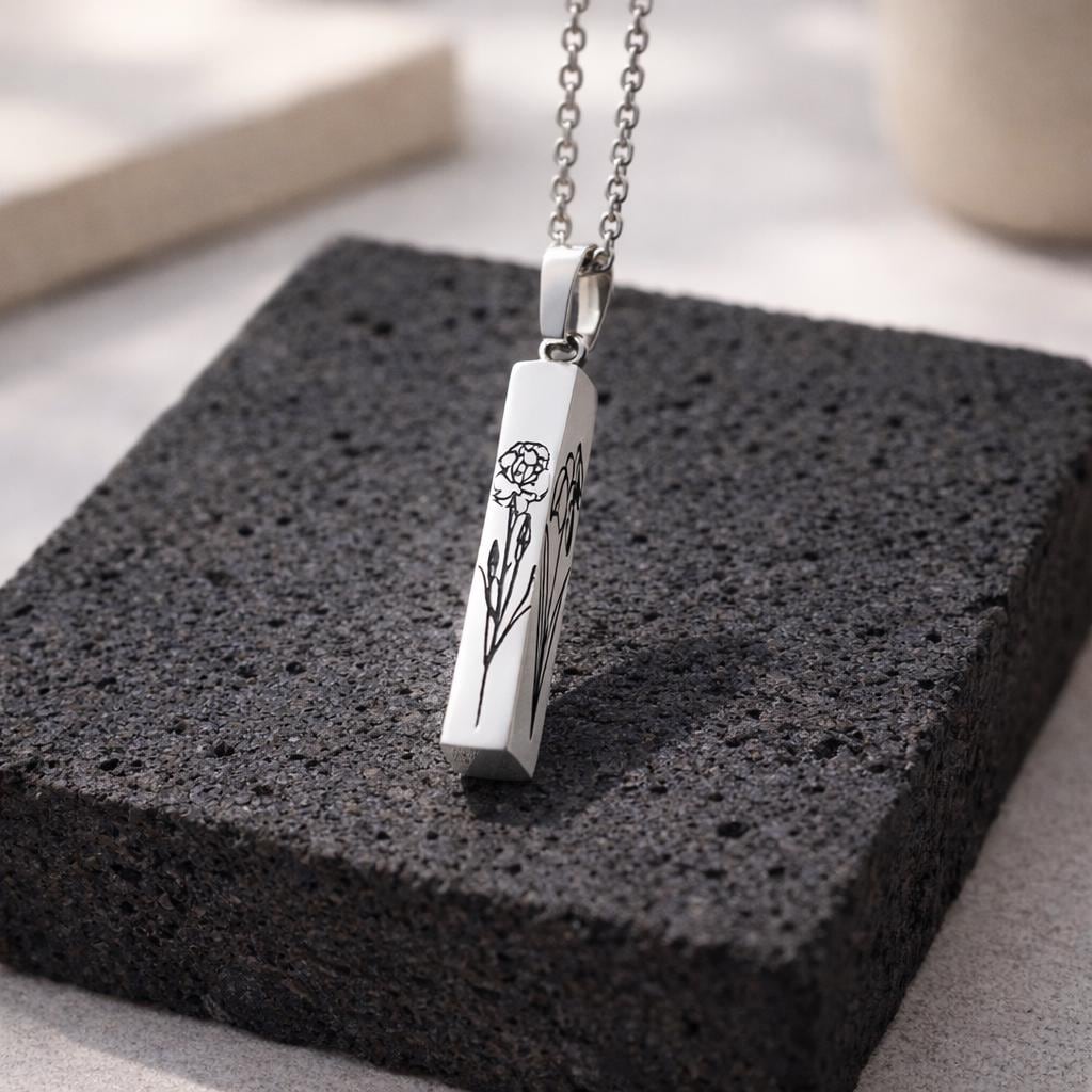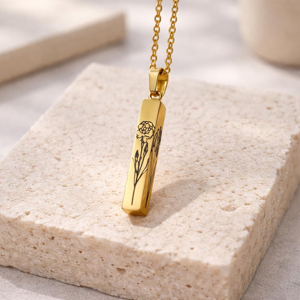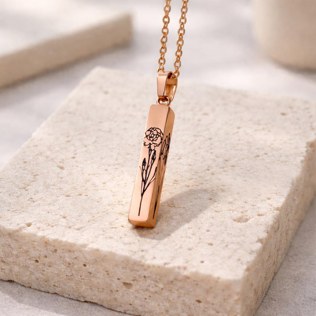 Birth Flower Pendant Bar Necklace, Personalized Engraved Gifts, Christmas Gift for Daughter Mom Sister