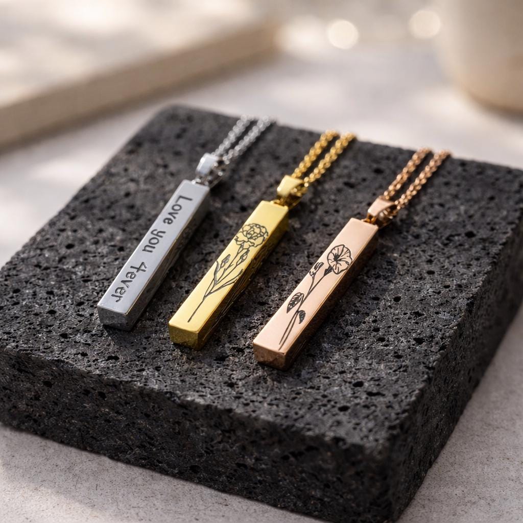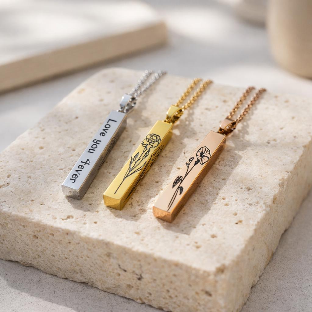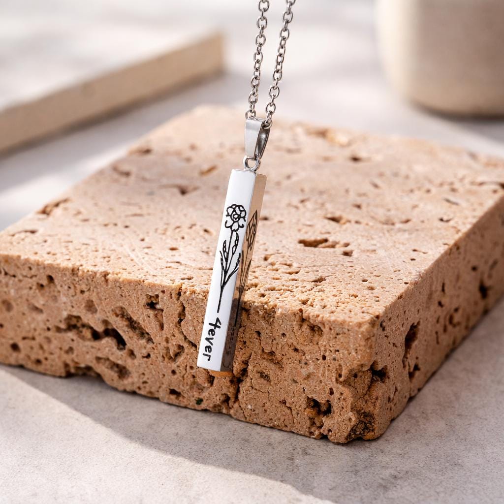 Birth Flower Pendant Bar Necklace, Personalized Engraved Gifts, Christmas Gift for Daughter Mom Sister