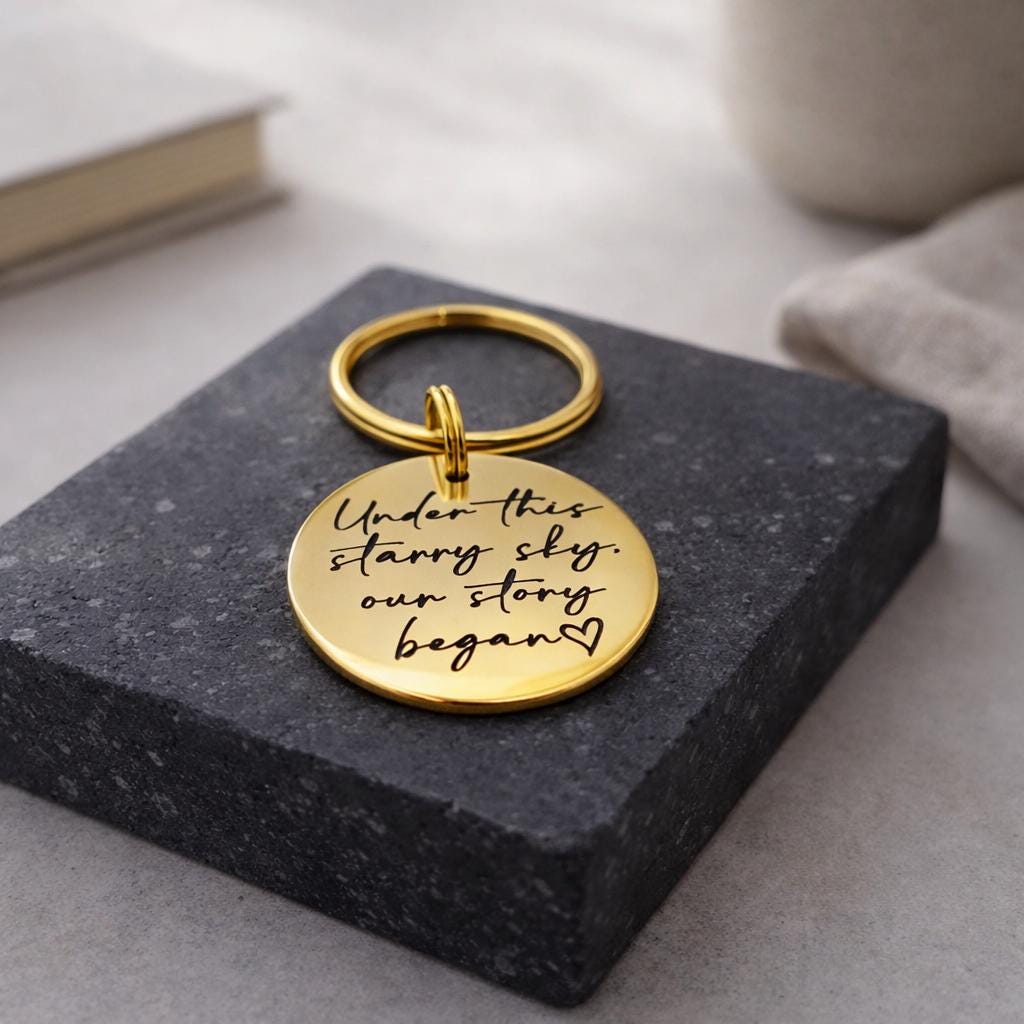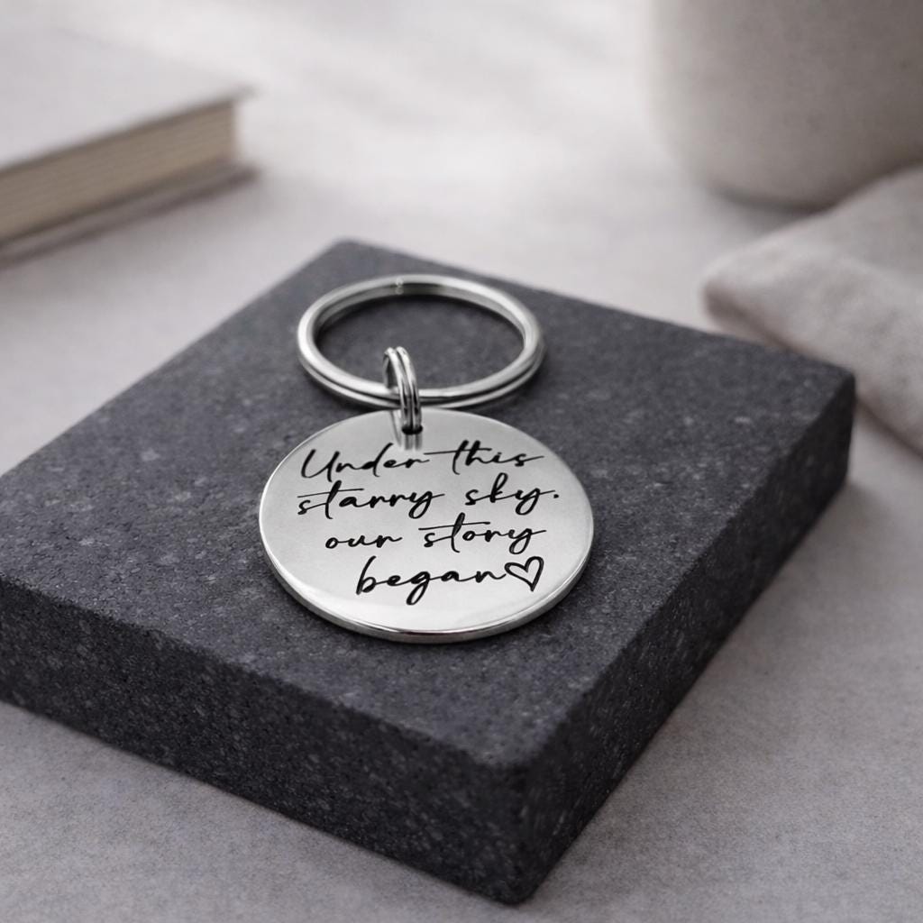 Perfect for anniversaries, birthdays, or simply to celebrate a cherished moment, this compact yet thoughtful keychain ensures your most treasured memories are always at hand. Personalize yours today to create a gift as unique as the stars above!