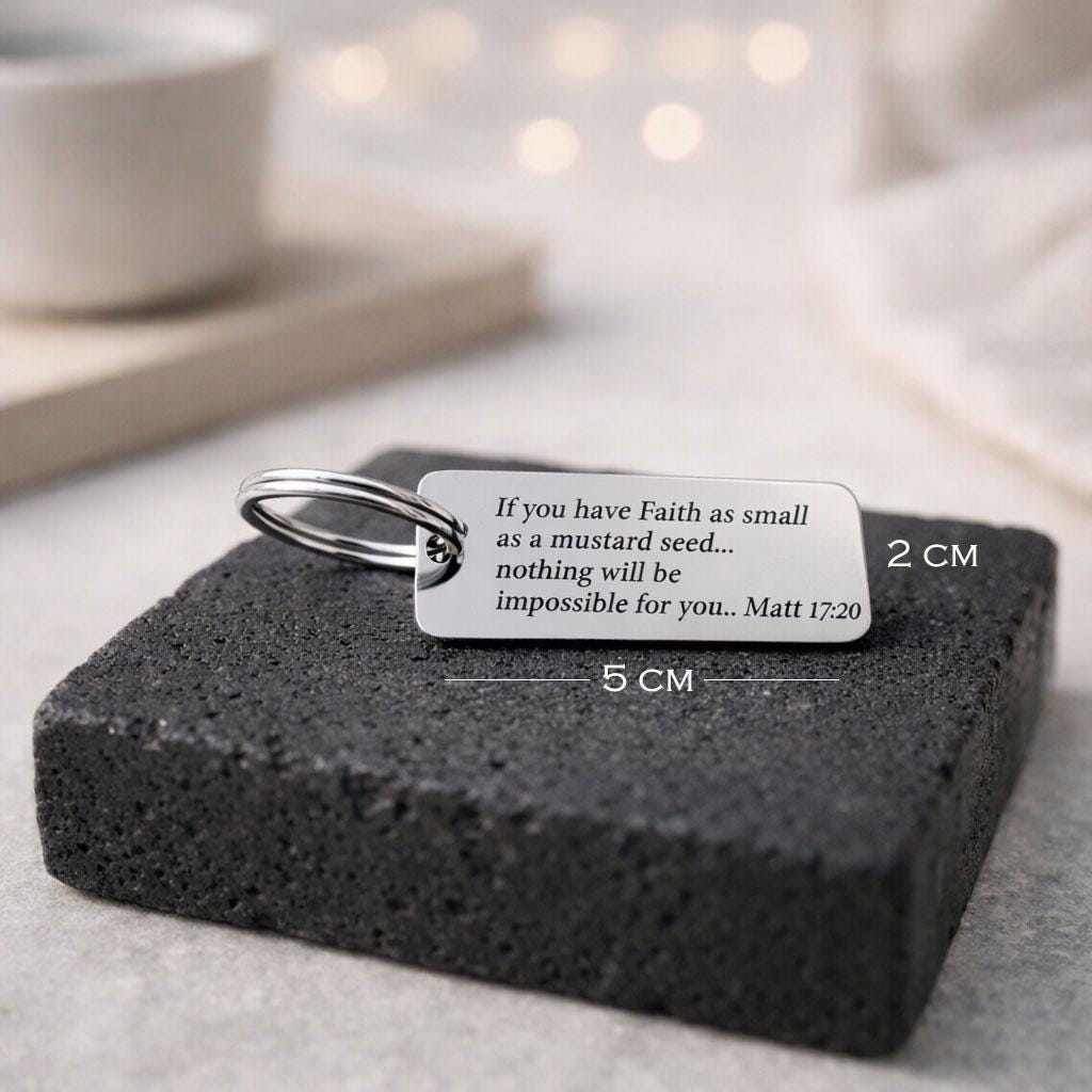 Matthew 17:20 Christian Keychain - If you have faith as small as a mustard seed nothing will be impossible for you. - Gifts ideas for bible lovers.