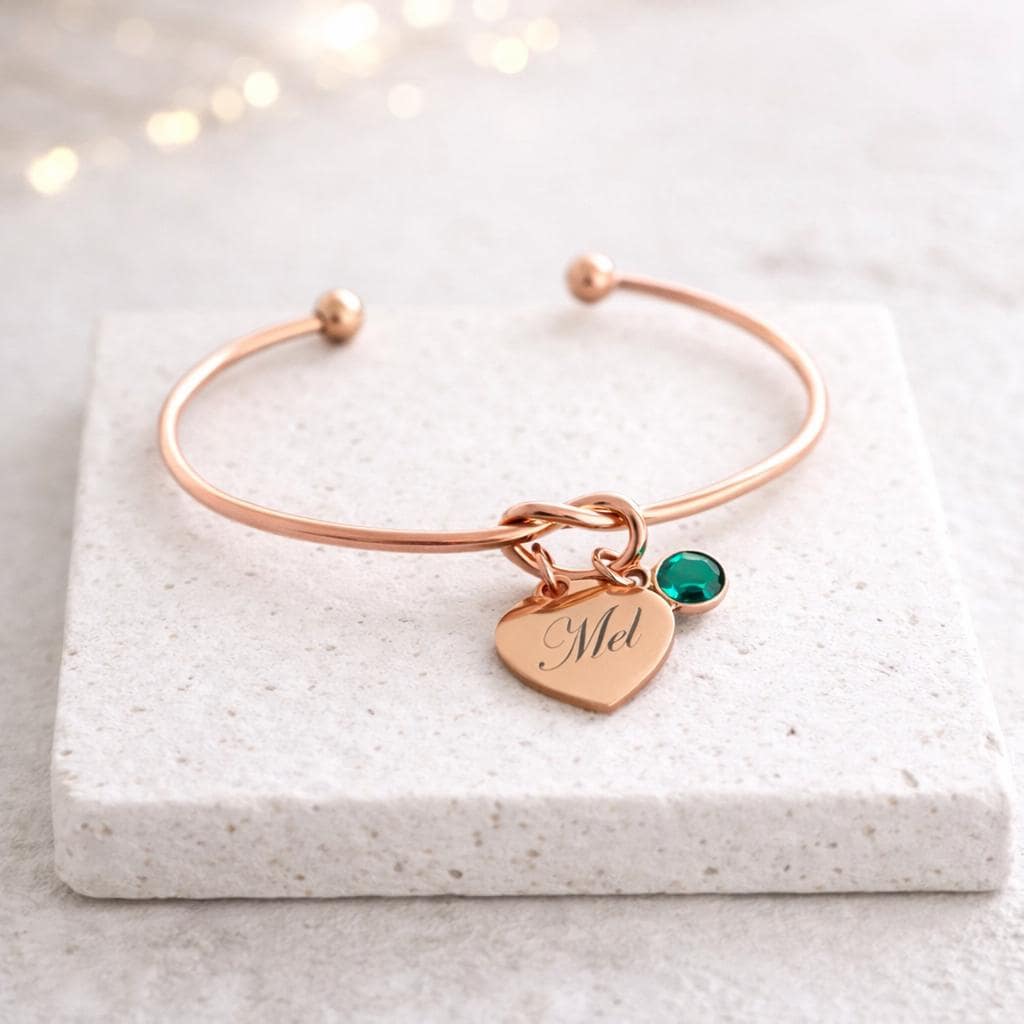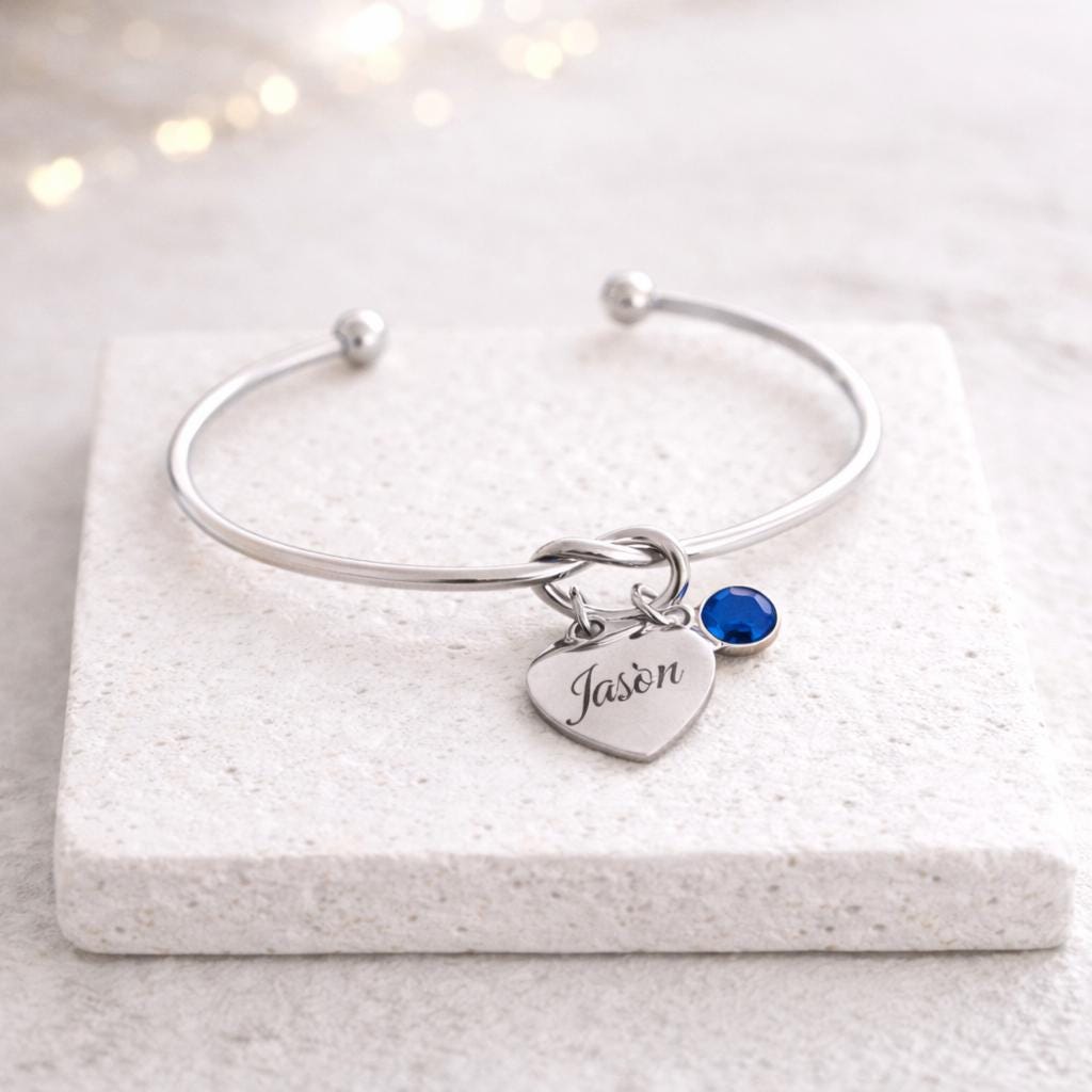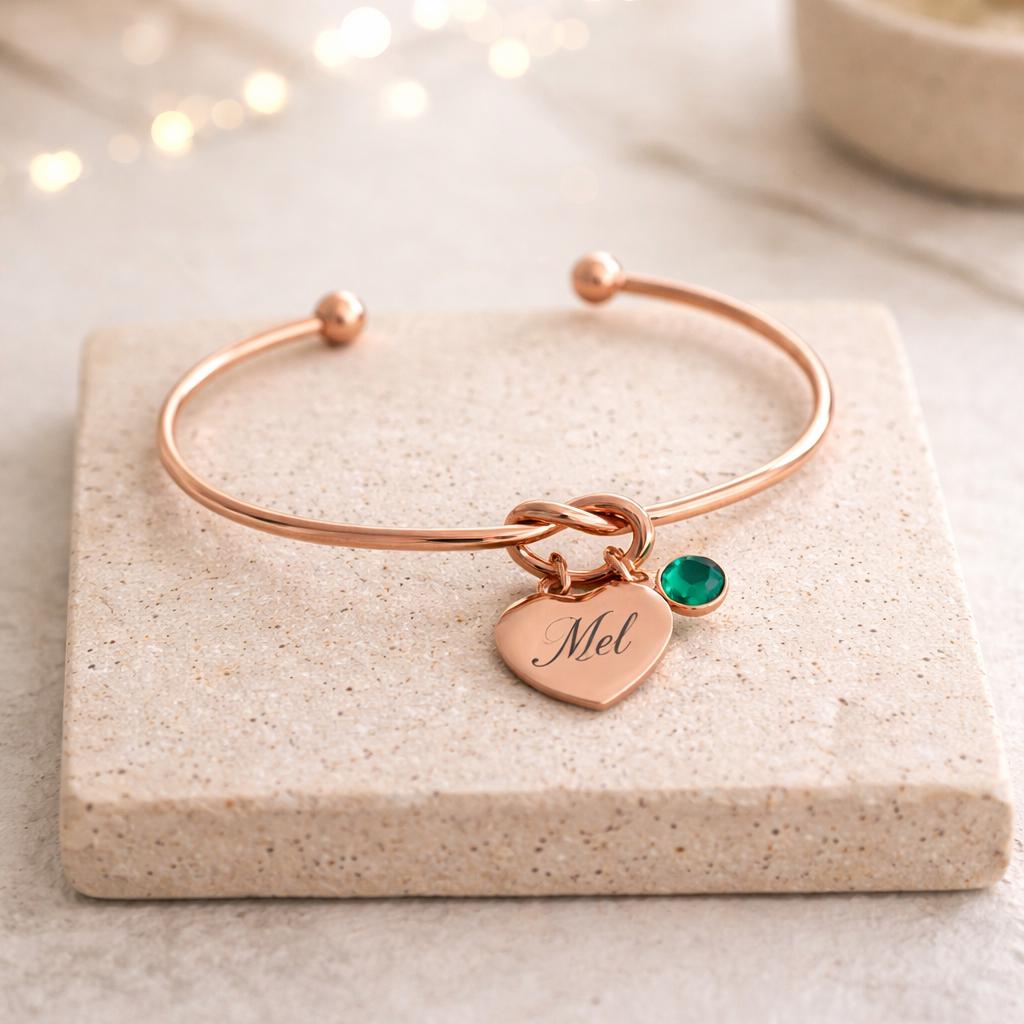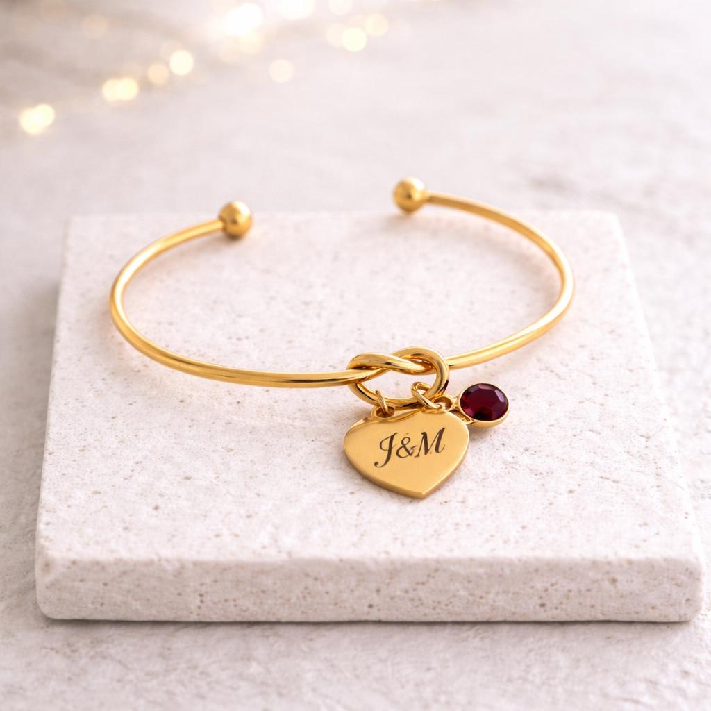 Knot bracelet with Initial / Name Engraved with Birthstone.