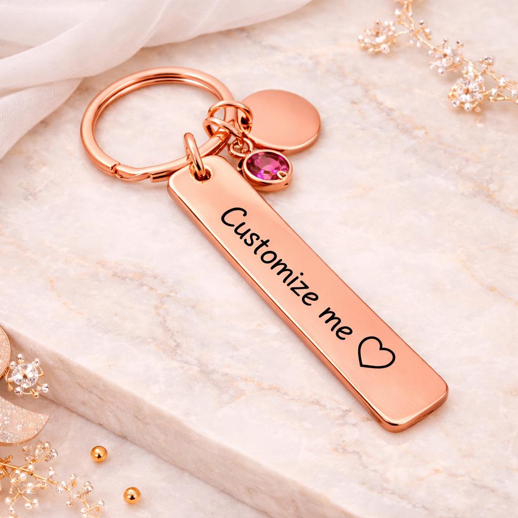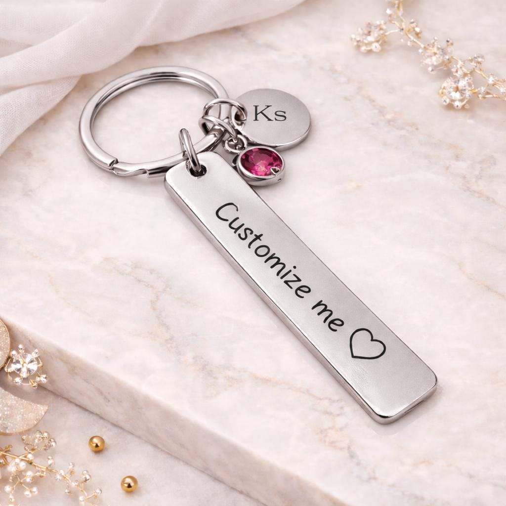 Custom Birthstone Keychain Key Ring , personalized jewelry, Engraved keychain, birthstone keychains, gift for her