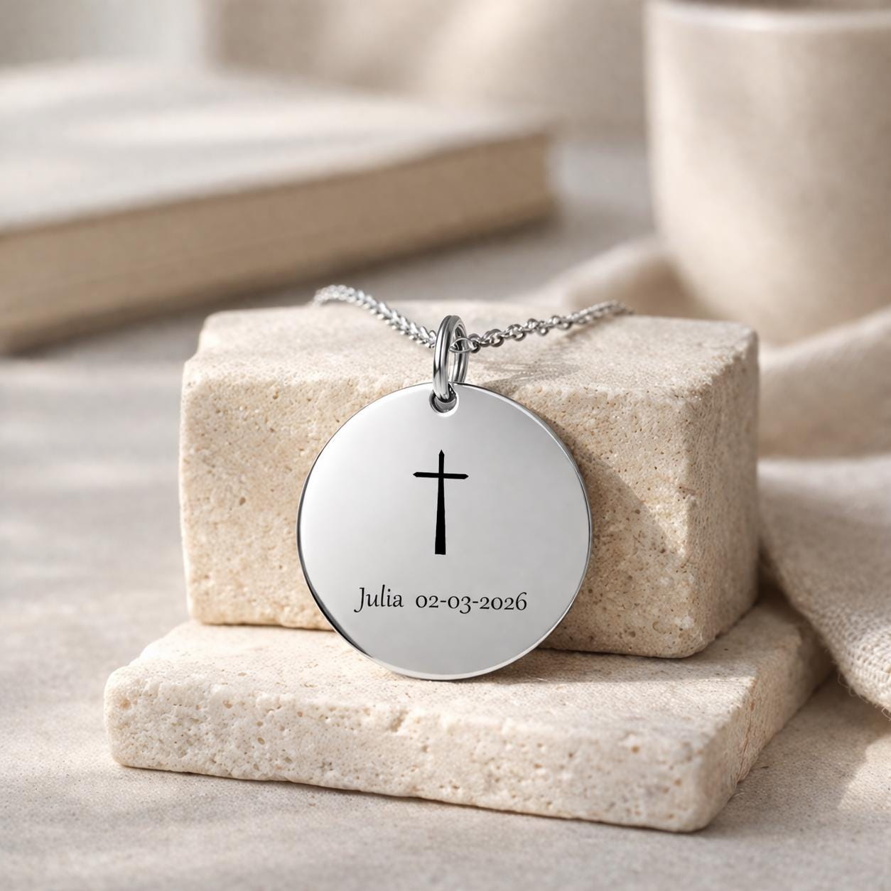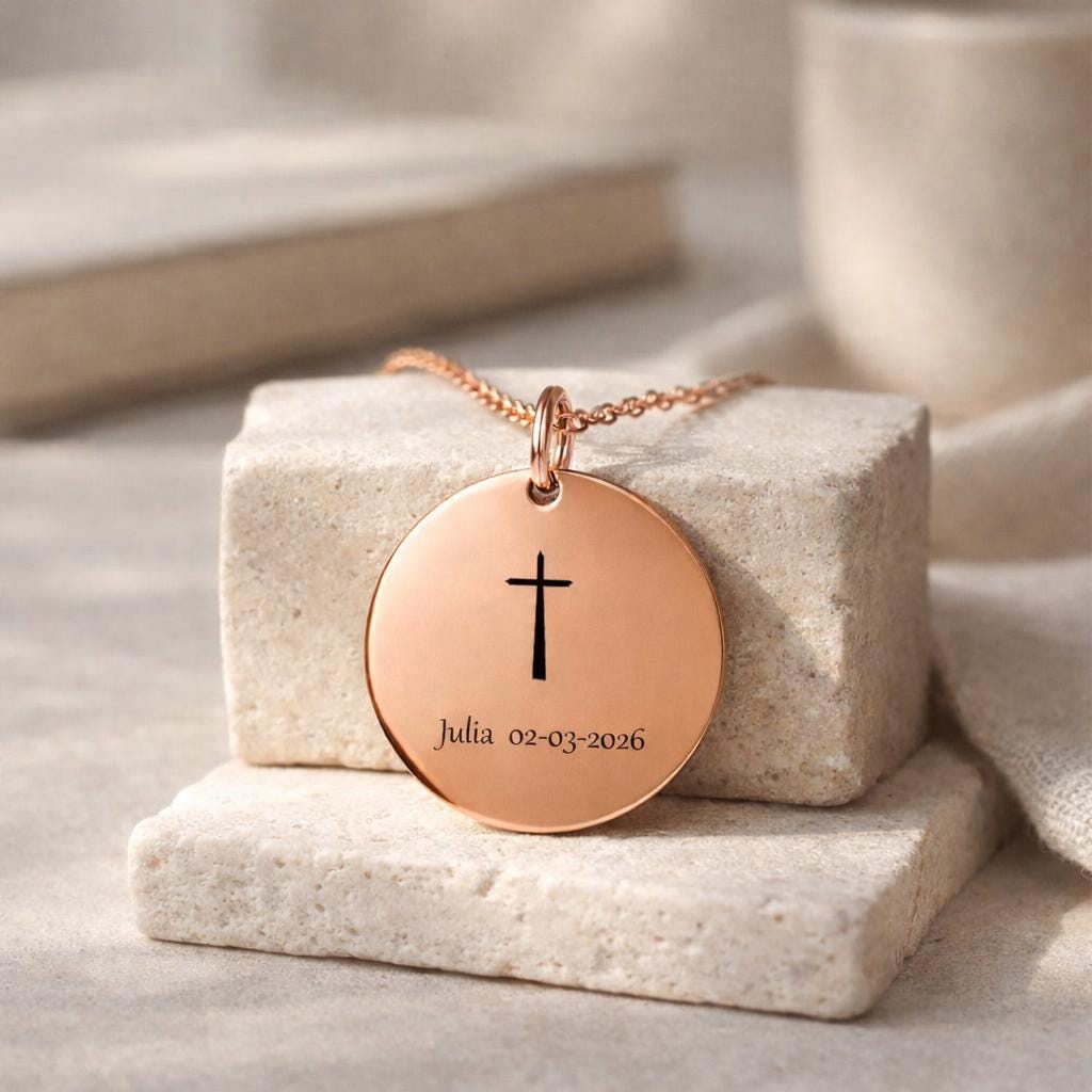 Custom Name And Date Cross Baptism Necklace For Her