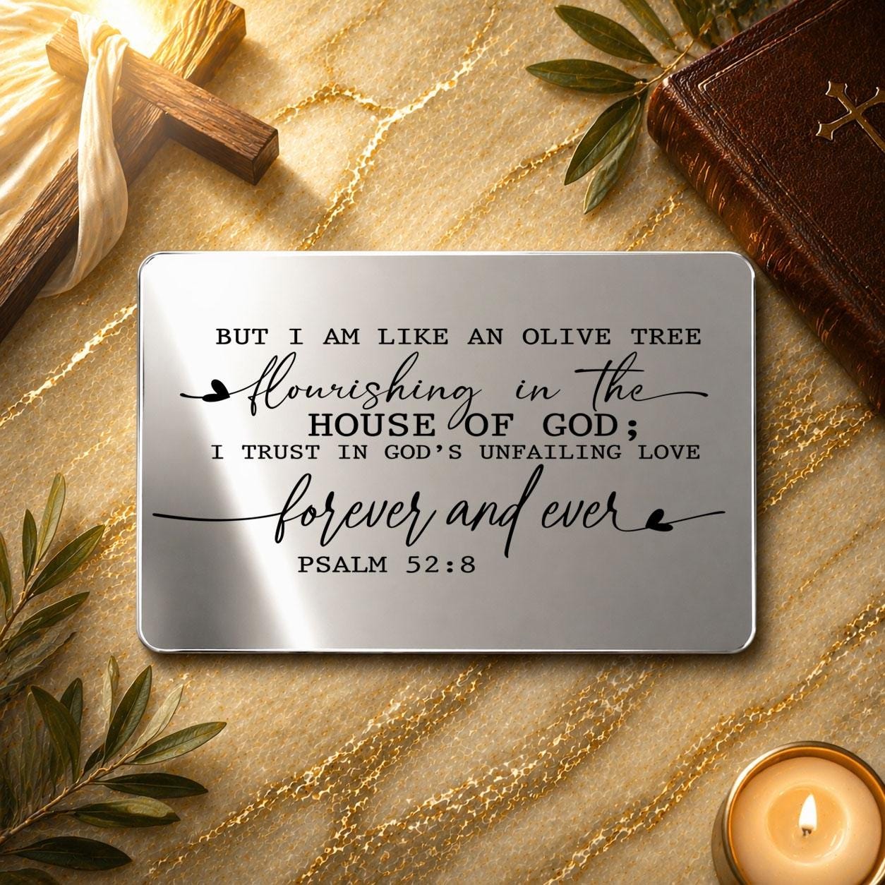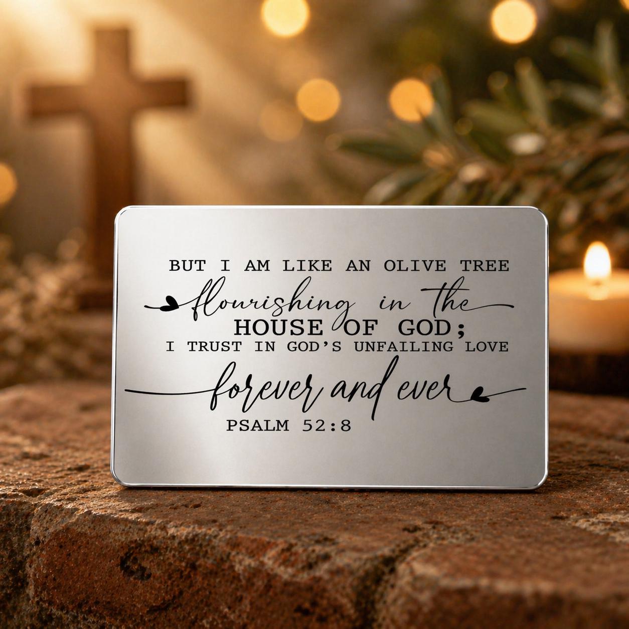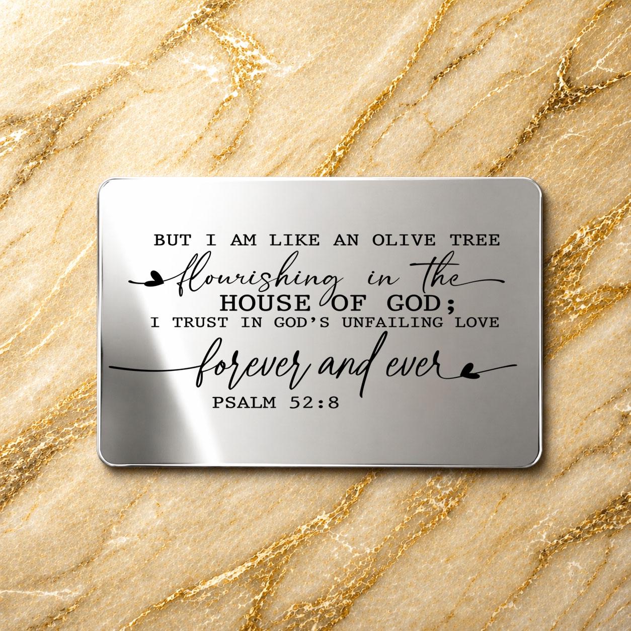 Psalm 52:8 "But I am like an olive tree flourishing in the house of God; I trust in God’s unfailing love for ever and ever."