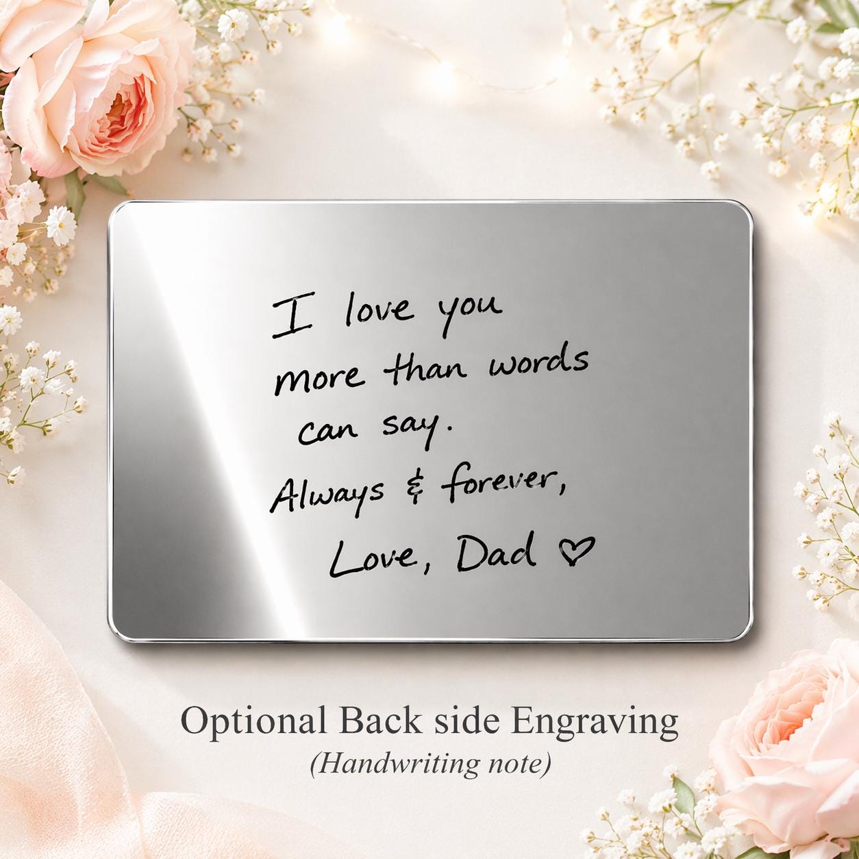 Optionally you can have back side engraved with upto 10 line text OR a Handwritten note.