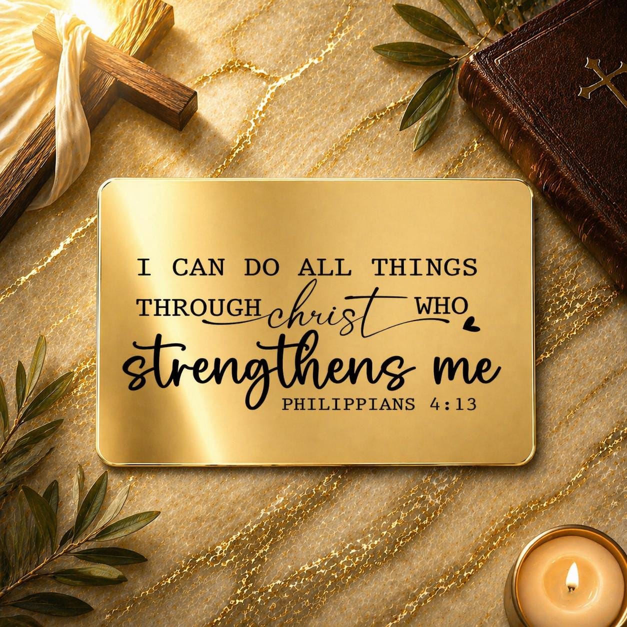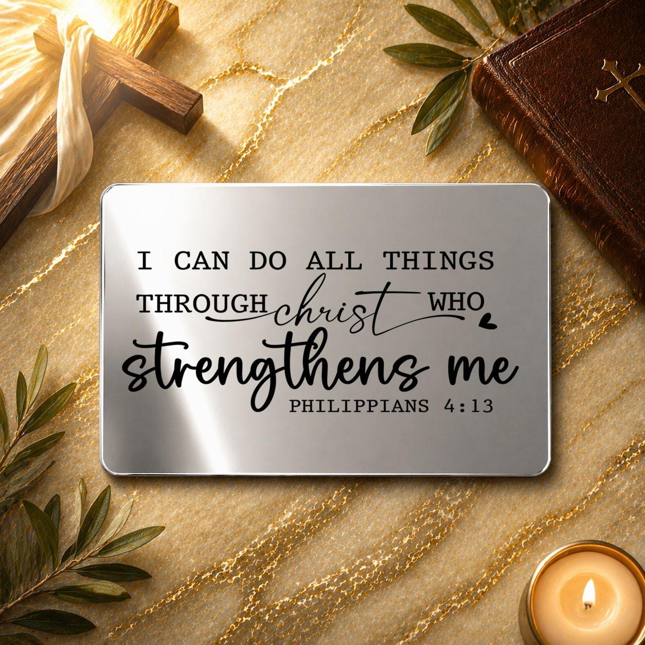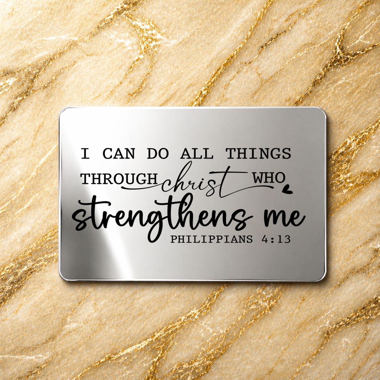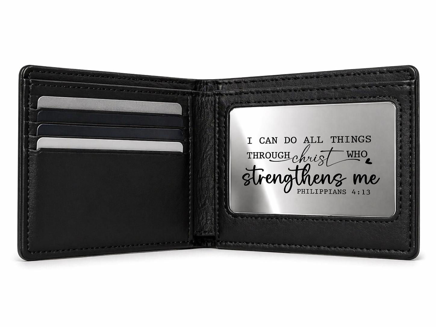 Philippians 4:13 – Christian gifts for Him. Wallet insert. I can do all things through christ who strengthens me.