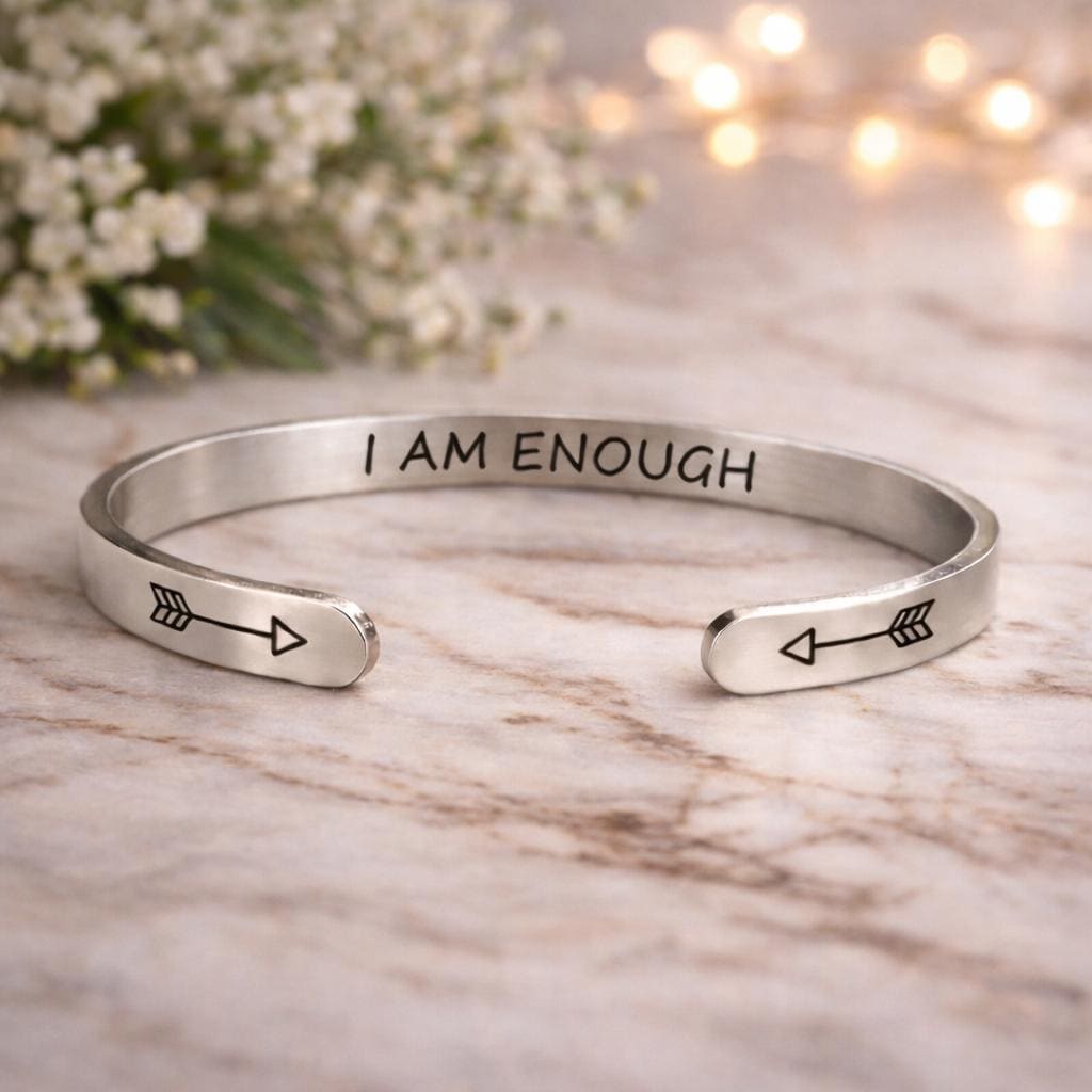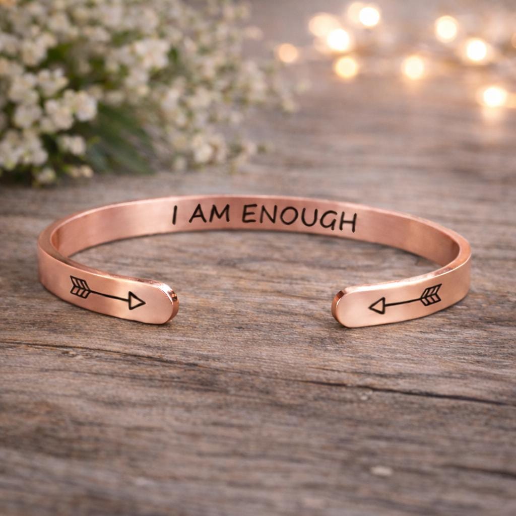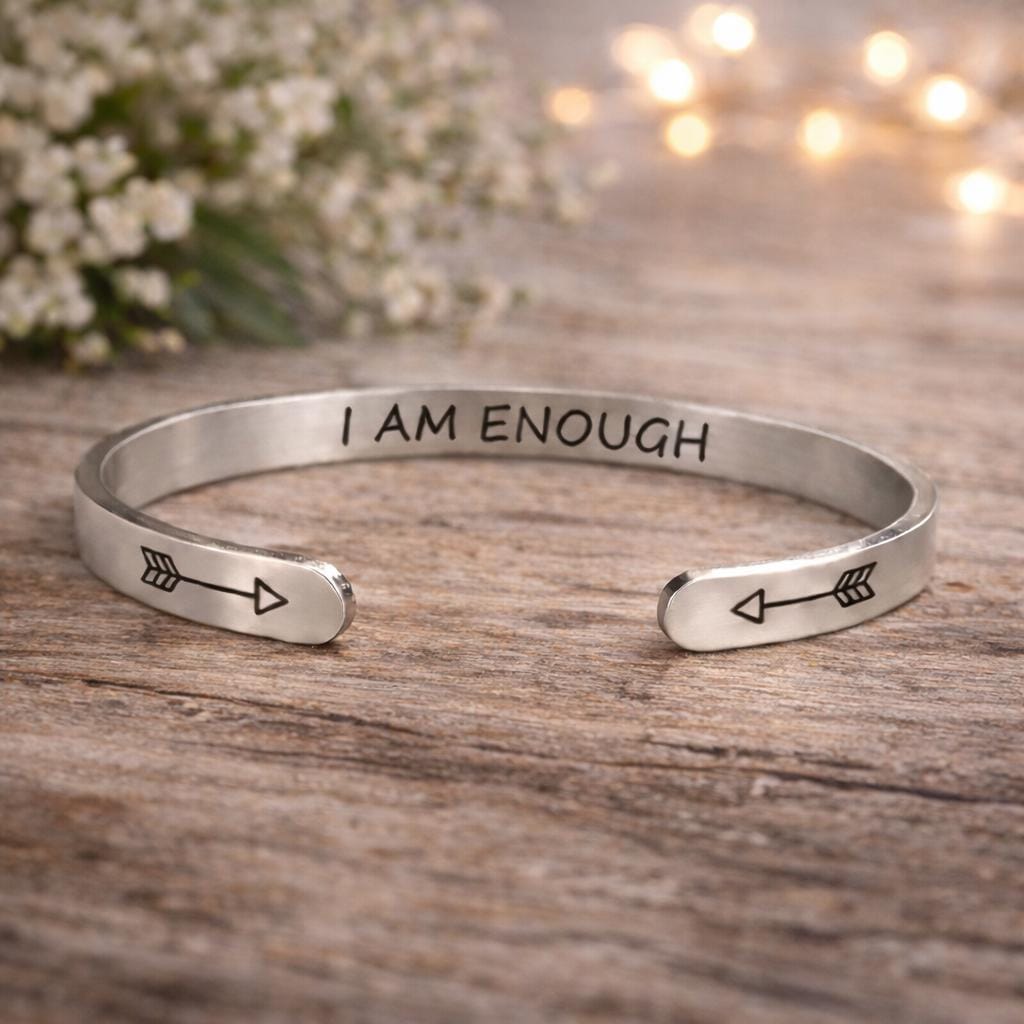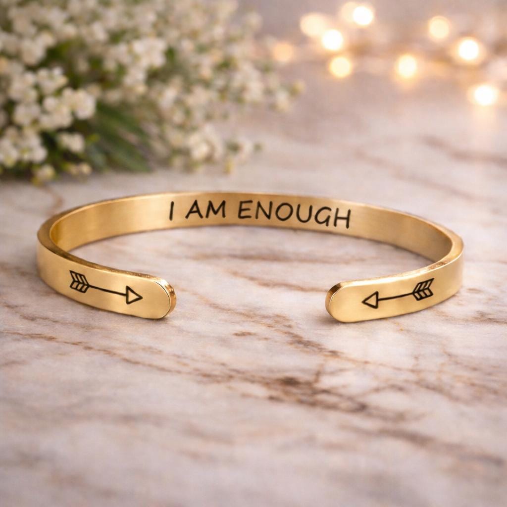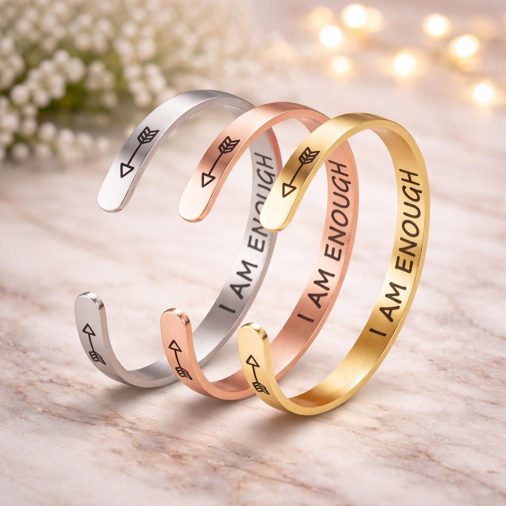 I am ENOUGH Bracelets Cuff Jewelry Gift for Confidence - 3 Colors Rose Gold color & Steel color & Yellow Gold