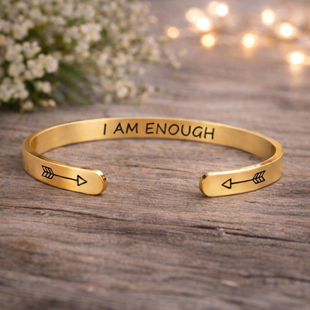 I am ENOUGH Bracelets Cuff Jewelry Gift for Confidence - Yellow Gold color