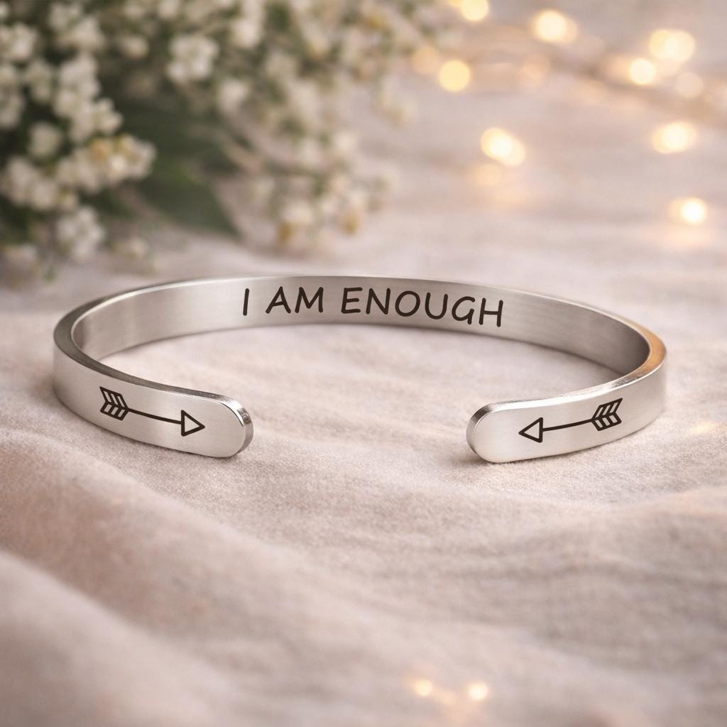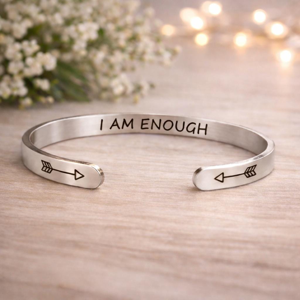 I am ENOUGH Bracelets Cuff Jewelry Gift for Confidence - Steel Silver color