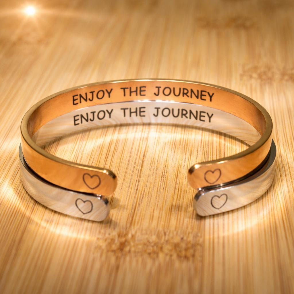 Enjoy The Journey Cuff Bracelet is available in 2 Color tones. Rose Gold color & Steel color. Make your choice or buy both.