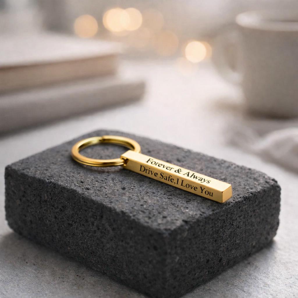 Bar Keychain with Customised Message for Men Women. Custom Bar KeyChain Gifts. Message will be engraved Horizontally as shown in the Photos.