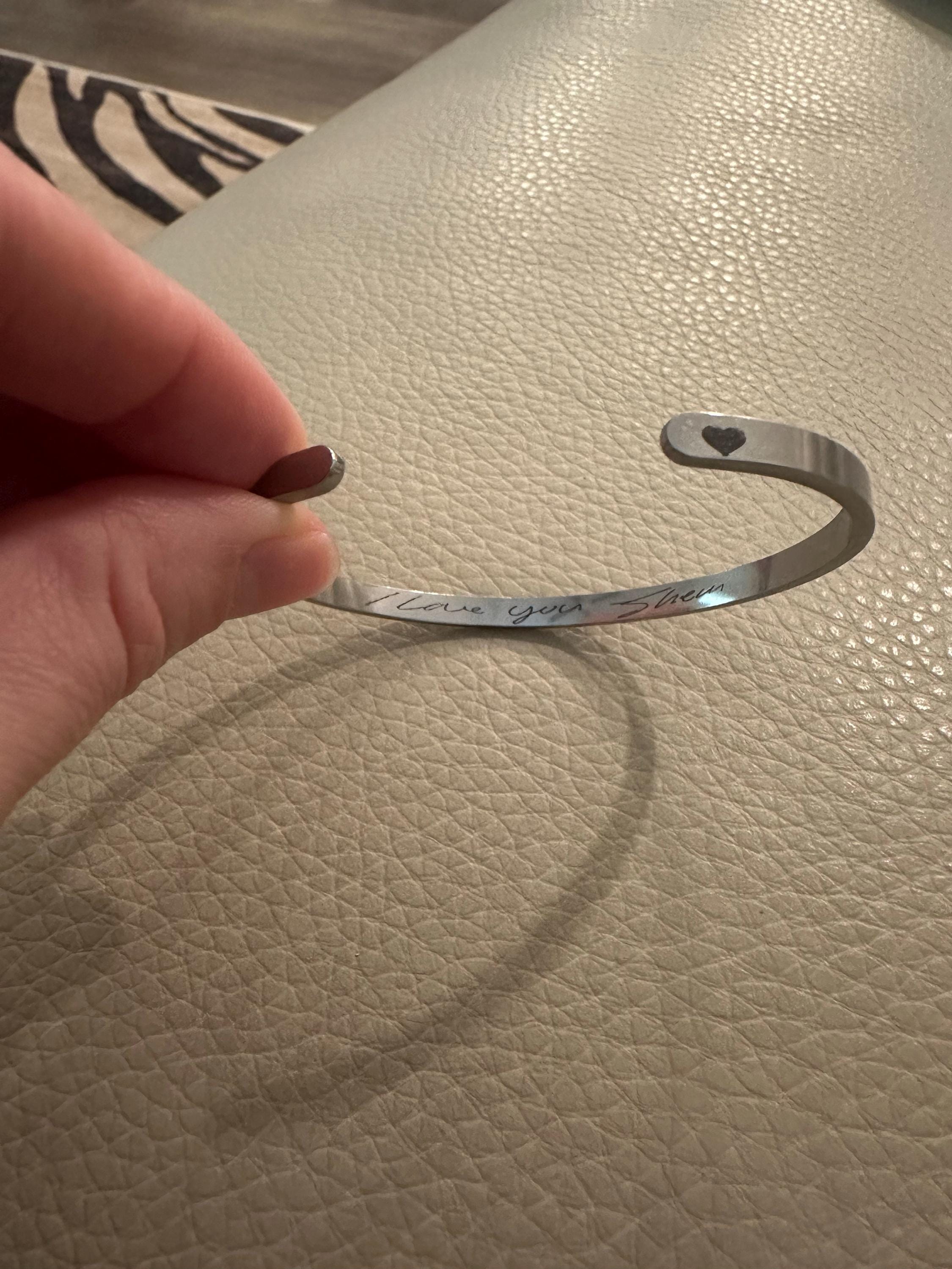 I am so happy with my purchase! I original ordered bracelets for my whole family in honor of my brother after he passed away. I had a meaningful saying printed on the outside, and had an engraving in his handwriting on the inside. Everyone absolutely loved them and still wear them daily. After 3 years of daily use all of the bracelets still look great. Unfortunately, one of my family members lost their bracelet and they were understandably devastated. I reached out to Rose to order exact replacements(I got extras just in case), she made the process effortless and I cannot rec working with her enough! It’s been so special to have these precious keepsakes to remember my brother! Such an amazing product. Rose is amazing to work with! 10/10 recommend!!
