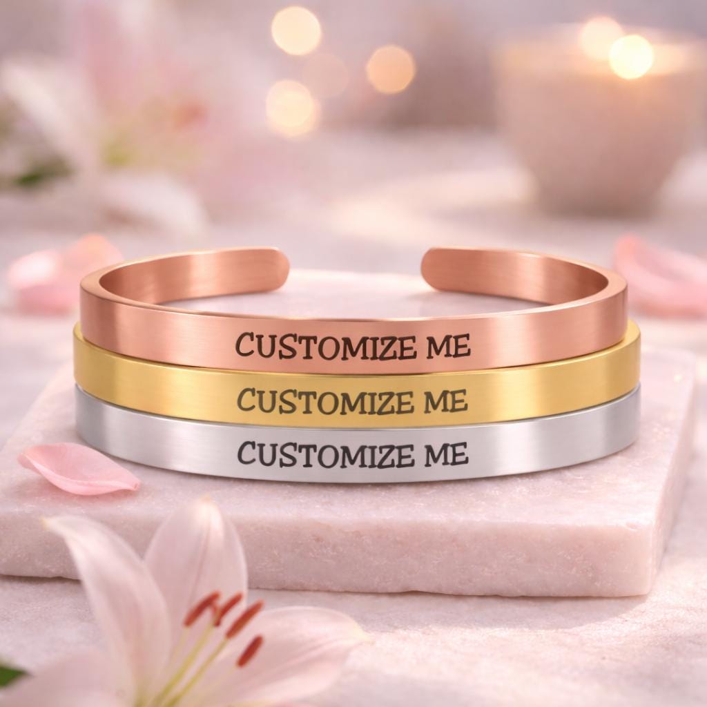 Personalize, and express your unique feelings on this Cuff Bracelet. Include your thoughts on this unique bracelet such as any Cancer slogan or Motivational Message , names, religious verses, GPS Coordinates, famous quotes and initials, memorable dates (birthdays or anniversary), memorable places on this bracelet. This is a unique gift for yourself or loved ones in your life, weddings and bridesmaids or Cancer Patients Survivors Fighters
