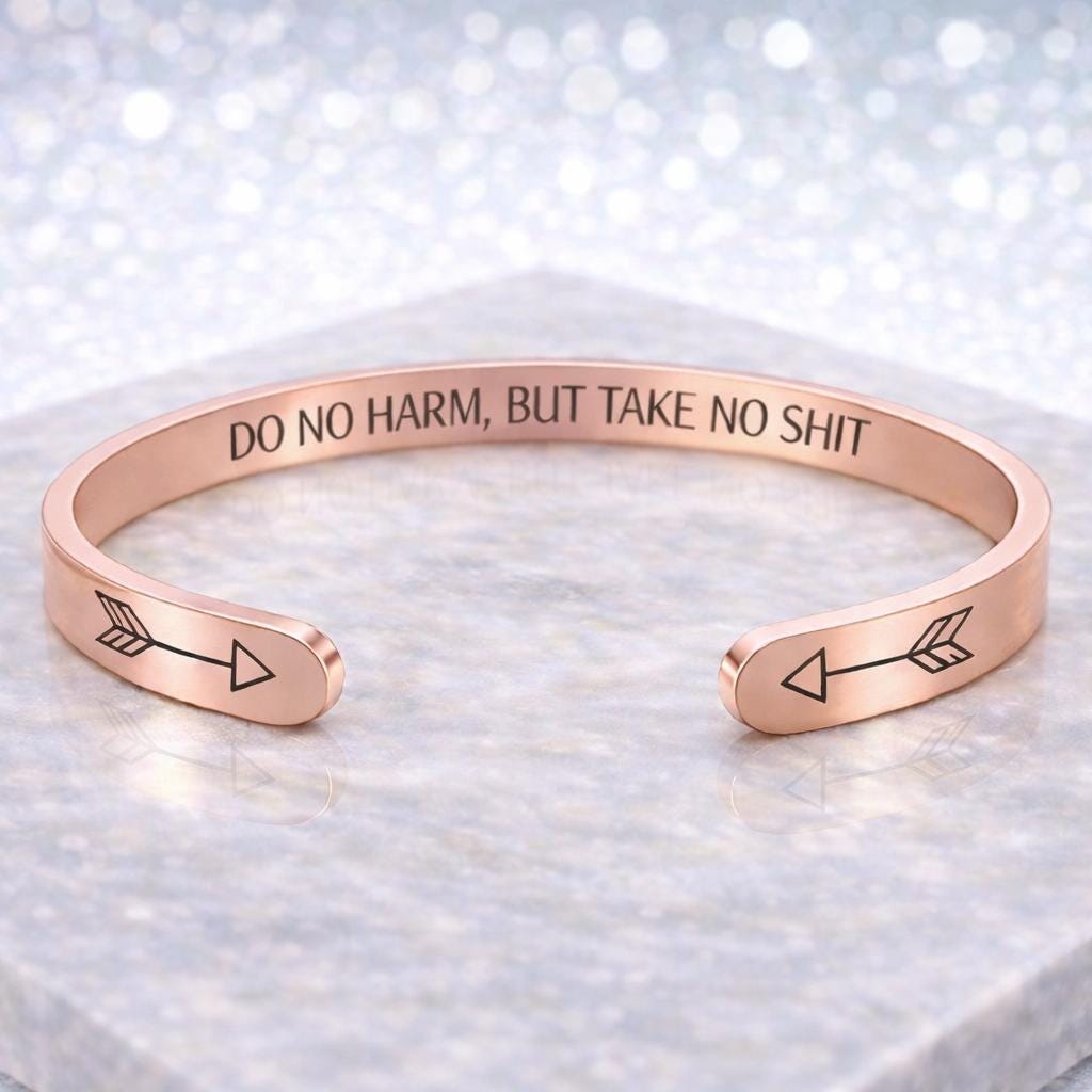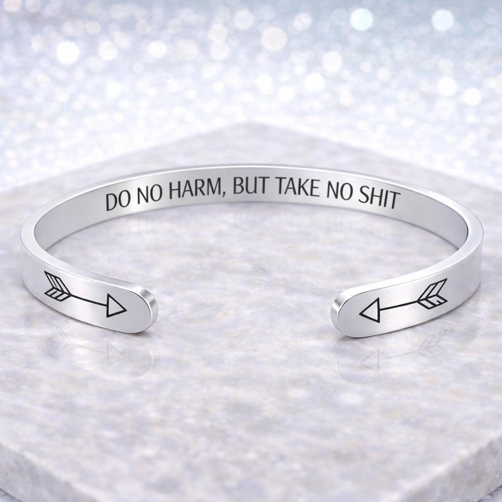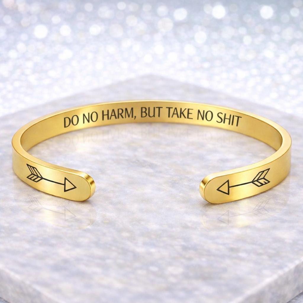 Do No Harm But Take No Shit Gift Jewelry, Motivational Bracelet Message cuffs