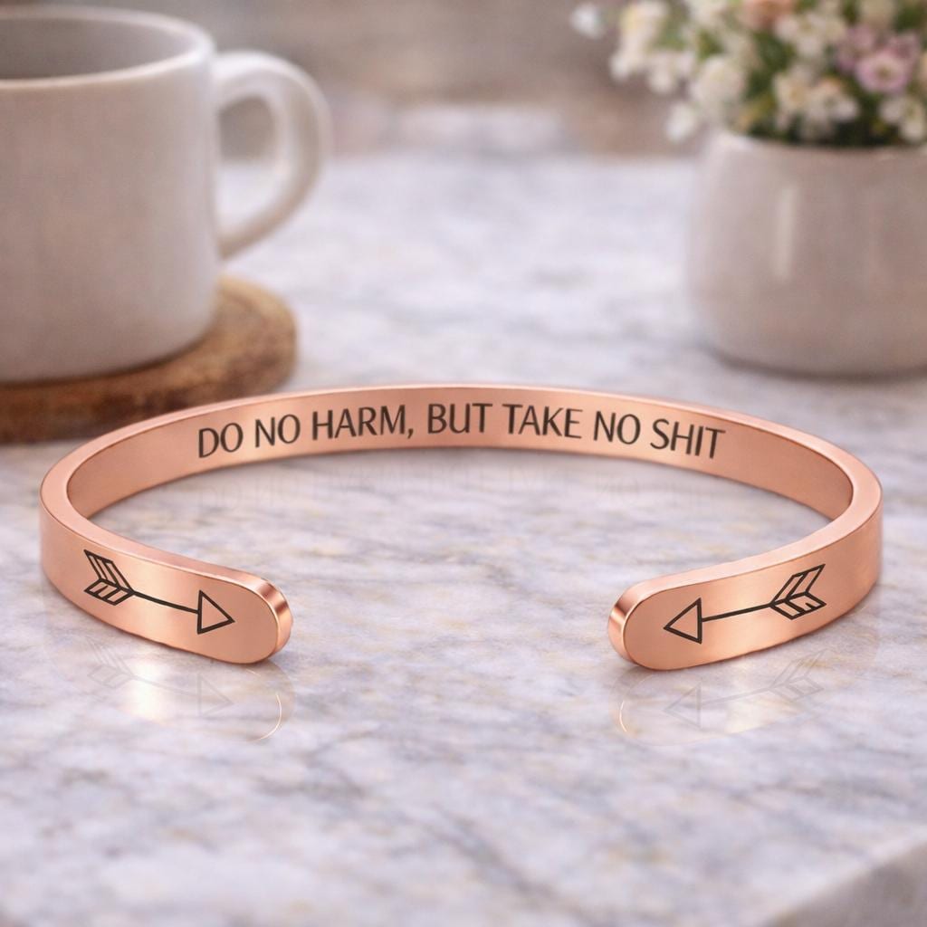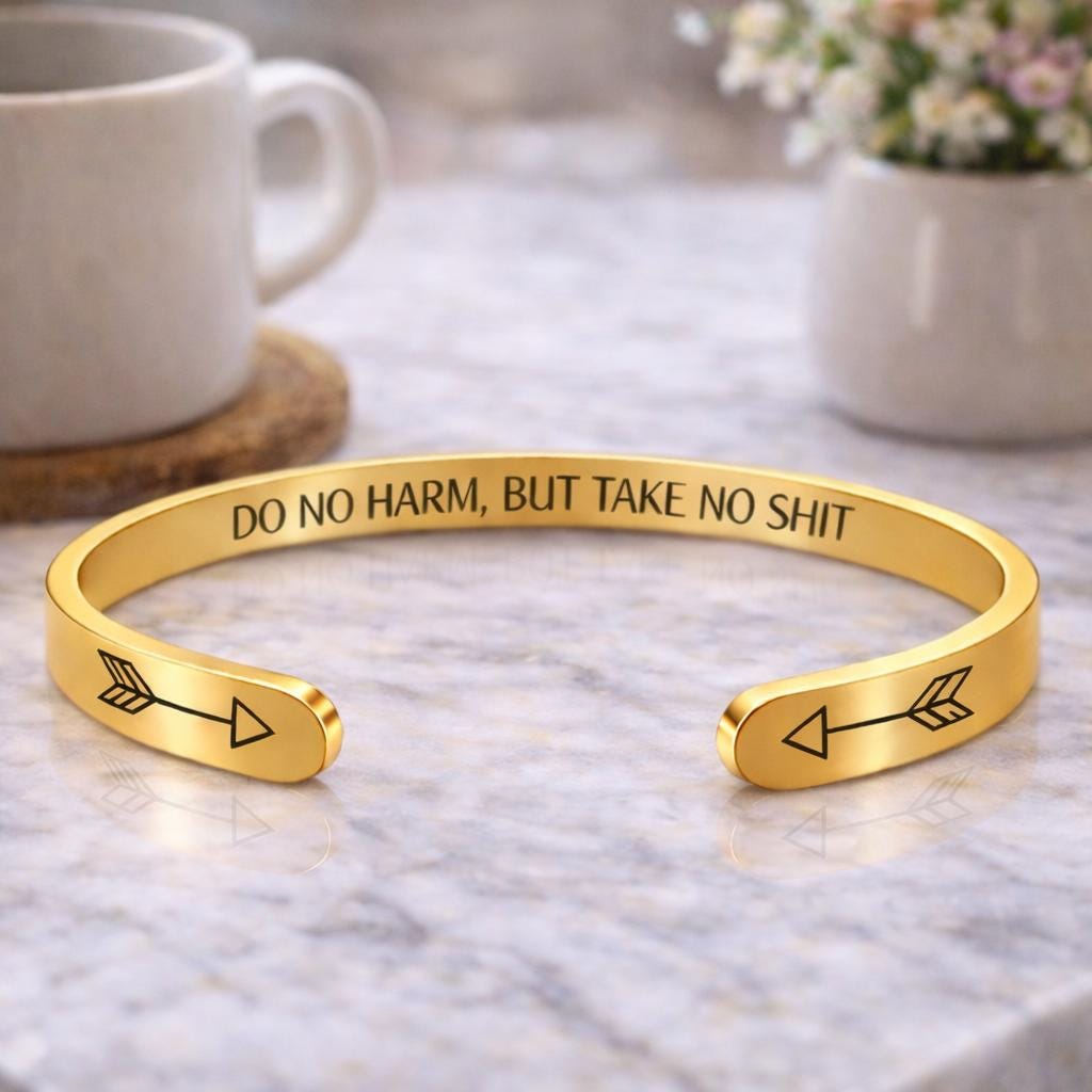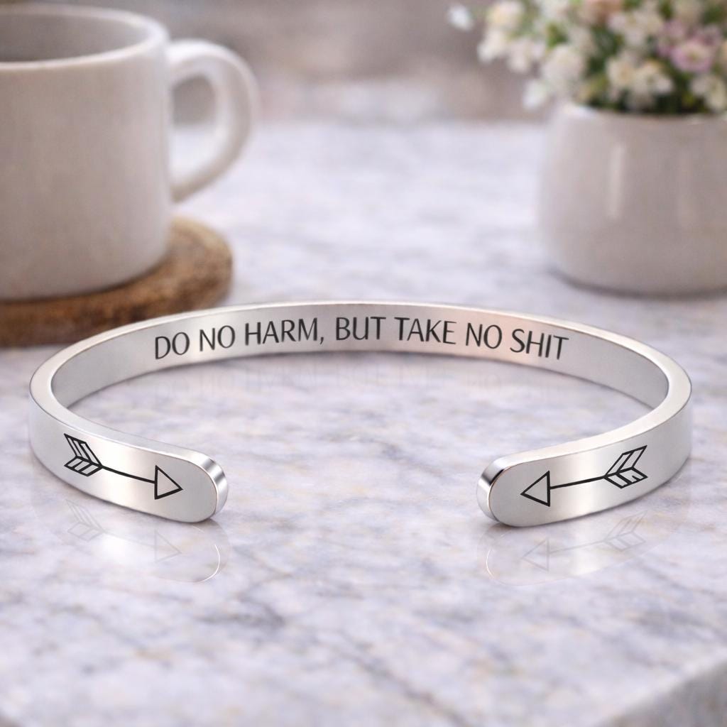 Do No Harm But Take No Shit Gift Jewelry, Motivational Bracelet Message cuffs