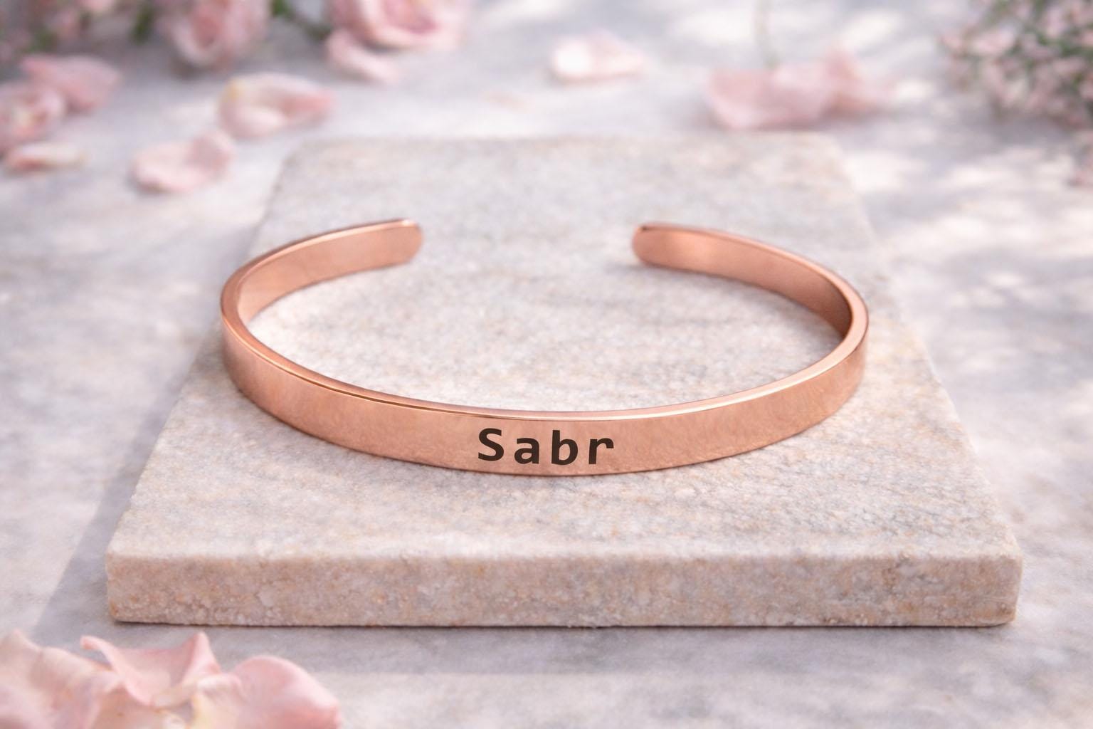 In the Islamic tradition, Sabr is one of the most beautiful virtues—representing endurance, self-control, and trust in God's timing. Our elegantly engraved cuff is designed to be a quiet source of strength on your wrist, making it a perfect daily companion or a deeply meaningful gift for someone navigating life's challenges.
