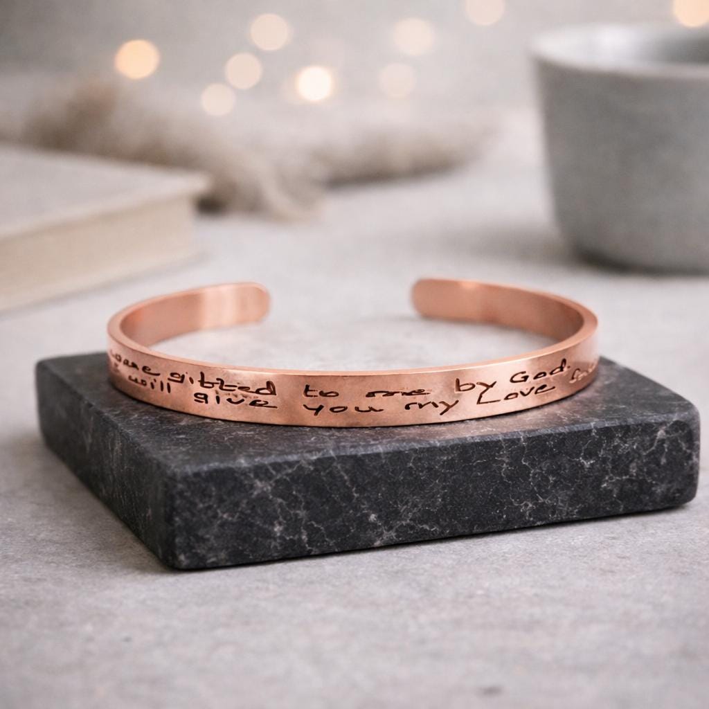This bracelet was perfect! The engraving was identical to the handwriting I submitted. Thank you so much!!