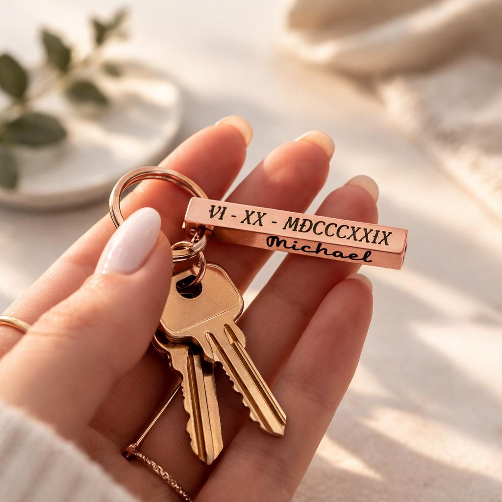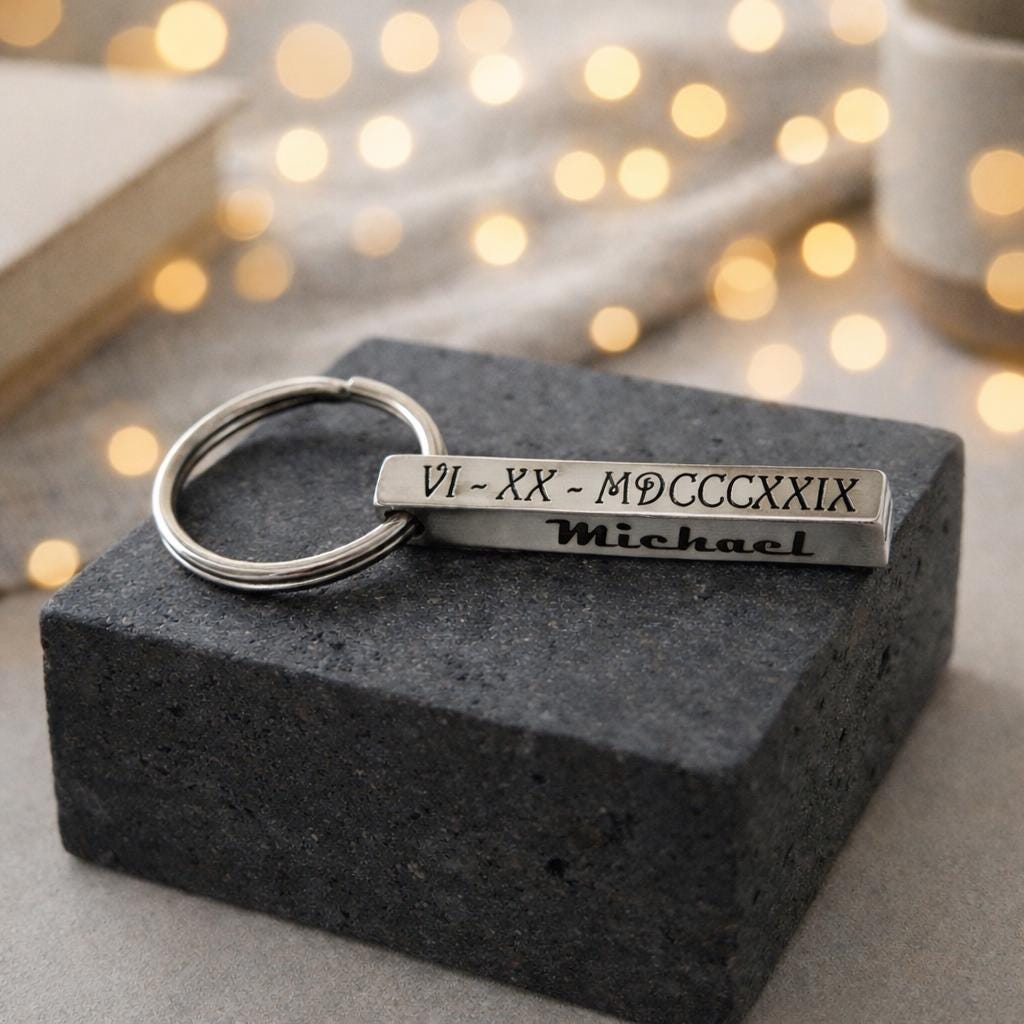 Custom Roman Numeral keychain / morse code keychain Personalized Vertical morse code keychain Gift personalized jewelry
