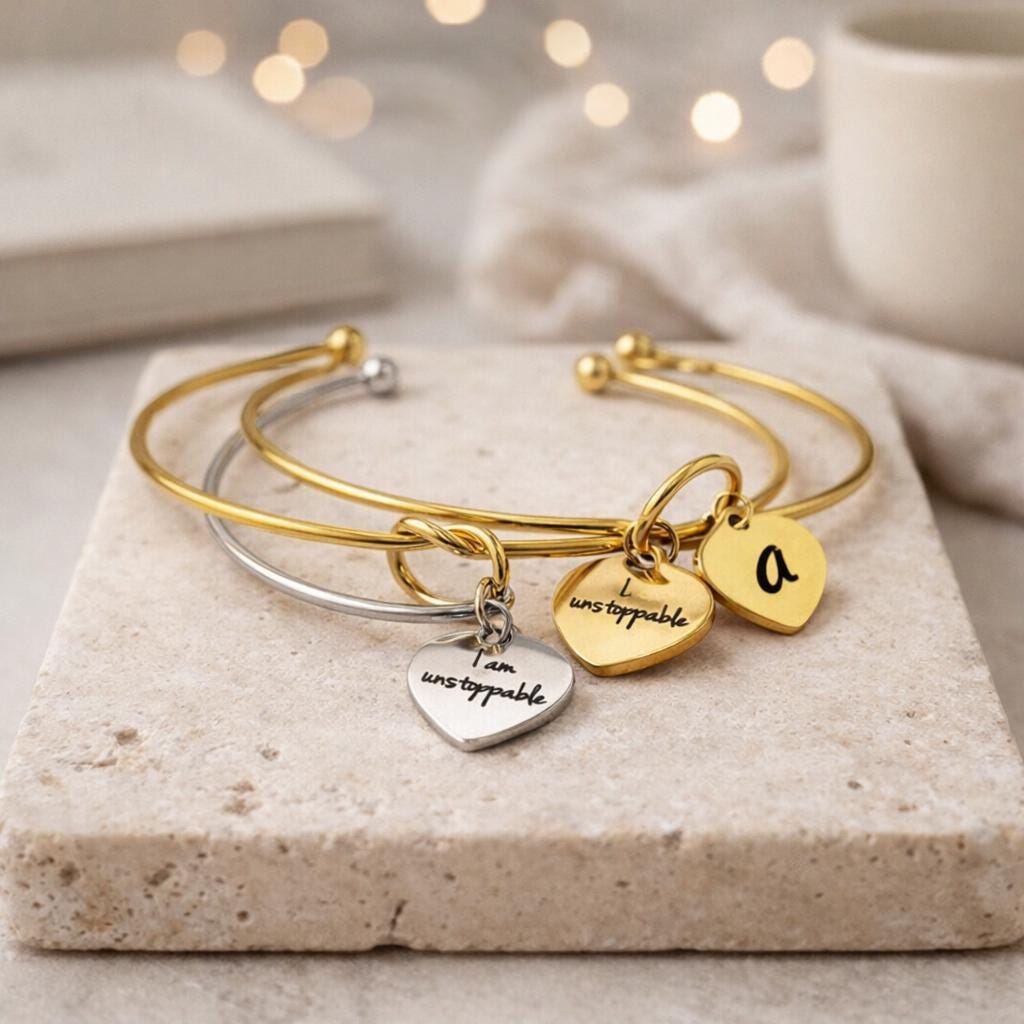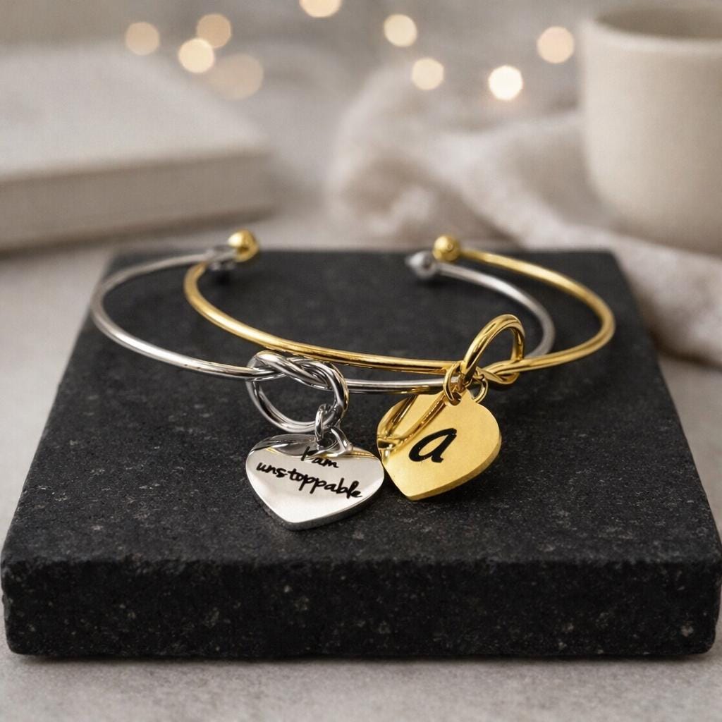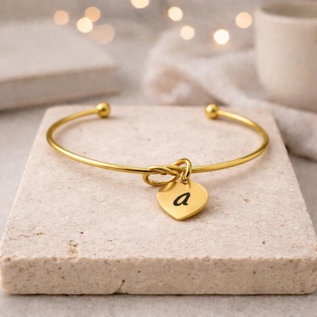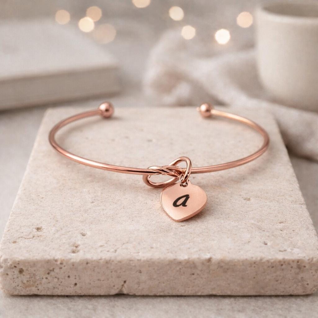 Knot bracelet with initial Engraved & Option to Engrave a small Message on back side.